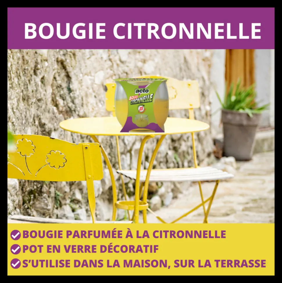 Au c艙ur de nos foyers et de nos soirées en plein air, il existe un élément qui allie fonctionnalité et esthétique avec une subtilité sans pareille : la bougie. Mais pas n’importe quelle bougie 鈥éable, conçue pour enrichir vos moments de détente.Description et Caractéristiques Ces bougies ne sont pas de simples sources de lumière. Elles sont infusées d’un parfum de citronnelle de synthèse, choisie pour sa qualité et son efficacité. Leur couleur, intégrée directement dans la cire, ajoute une dimension visuelle attrayante. Lorsqu’elles brûlent, ces bougies diffusent une senteur de citronnelle persistante, transformant votre espace en un havre de paix, à l’abri des nuisances habituelles des soirées estivales.Utilisation Polyvalente L’aspect le plus remarquable des bougies ACTO Citronnelle réside dans leur polyvalence. Conçues pour être utilisées aussi bien à l’intérieur qu’à l’extérieur, elles s’adaptent parfaitement à tout environnement. Que ce soit pour une soirée intime dans le salon ou un dîner sur la terrasse, ces bougies ajoutent une ambiance chaleureuse et accueillante.Précautions et Sécurité La sécurité est primordiale. Il est essentiel de ne jamais déplacer ou toucher la bougie lorsqu’elle est allumée. Suivre les instructions est crucial pour prévenir tout risque d’incendie ou de blessure. De plus, certaines précautions doivent être prises pour les personnes sensibles, car ces bougies contiennent du citral, pouvant causer des réactions allergiques.Conclusion En résumé, les bougies ACTO Citronnelle sont bien plus qu’une source de lumière. Elles sont un élément essentiel pour créer une ambiance sereine et agréable, tout en étant un choix pratique pour les soirées en extérieur. Avec une combustion de longue durée et une senteur apaisante, elles sont un choix incontournable pour quiconque souhaite allier esthétique, fonctionnalité et sécurité.