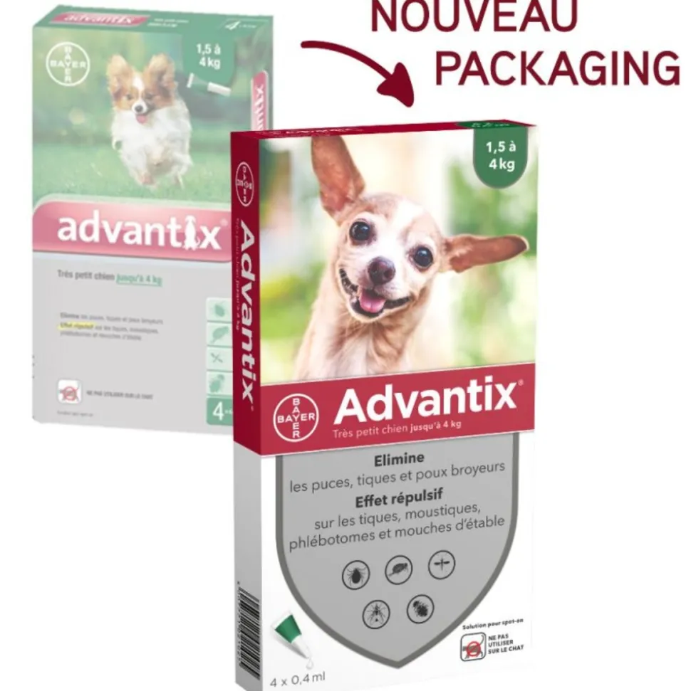 Précautions particulières d’emploi : Chez les animaux : Éviter le contact de la solution avec les yeux ou la bouche des chiens traités. Veiller à administrer le produit correctement tel que décrit dans la rubrique « Posologie et voie d’administration ». Veiller notamment à empêcher toute ingestion du produit par léchage du site d’application par les animaux traités ou des animaux en contact avec ces derniers. Ne pas utiliser chez les chats. Pour l’utilisateur : Bien se laver les mains après l’application. Eviter tout contact du produit avec la peau, les yeux et la bouche. En cas de contact accidentel avec la peau, laver immédiatement avec de l’eau et du savon. En cas de contact accidentel avec les yeux, rincer abondamment à l’eau. Si une irritation de la peau ou des yeux persiste ou en cas d’ingestion accidentelle du produit, consulter un médecin et lui montrer la notice. Ne pas laisser les enfants jouer avec les animaux traités jusqu’à ce que le site d’application soit sec. Lire attentivement la notice avant utilisation. Catégorie : Usage vétérinaire. Présentations : 1 sachet de 4 et 6 pipettes Advantix Très petit chien: AMM n° FR/V/1324410 09/2004, Advantix Petit chien AMM n° FR/V/2857504 09/2004, Advantix Chien moyen AMM n° FR/V/0721081 9/2004, Advantix Grand chien AMM n° FR/V/7763031 07/2004 du 27/01/2004 – Fabriqué par KVP Kiel, Allemagne – Titulaire d’AMM : Bayer HealthCare – 220, avenue de la Recherche 59120 Loos 706 580 149 RCS LILLE METROPOLE. Exploitant : Bayer HealthCare Division Animal Health – 13 rue Jean Jaurès 92807 Puteaux Cedex. v01/2014