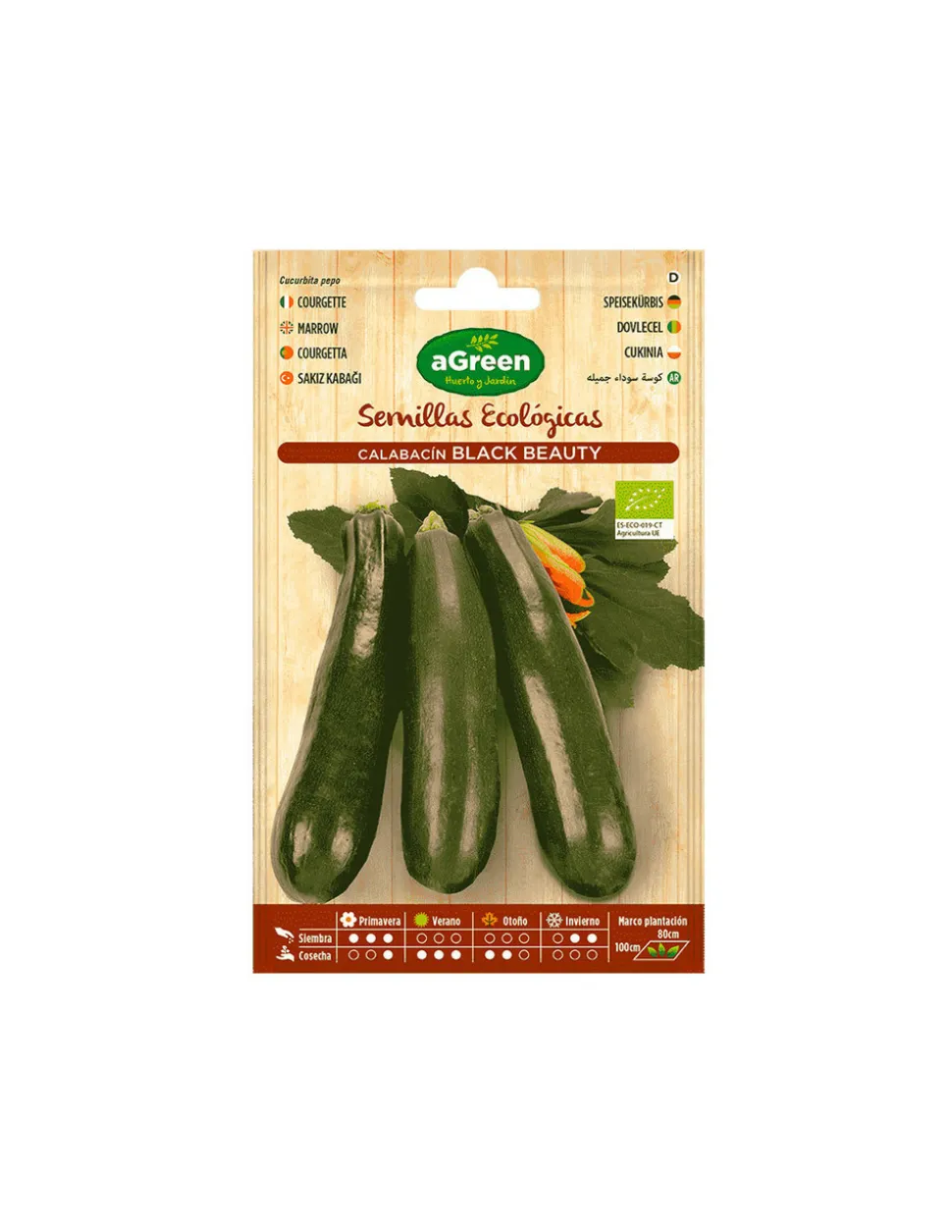 Sachet De Graines De Courgette Noire Eco Seeds Beauty Agreen. Buisson Sans Branches, Fruits Très Précoces, Fins, Allongés, À Bout Rond Et Coloration Verte. Usine Très Productive. Viande Savoureuse Et Délicate