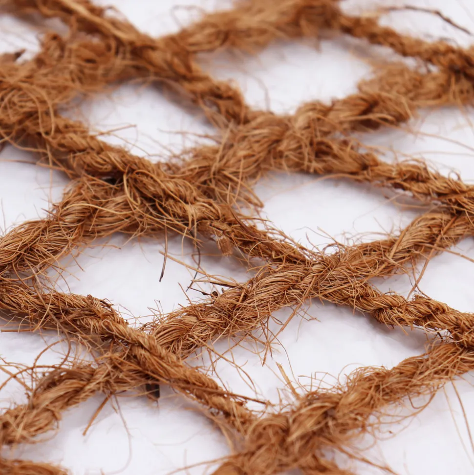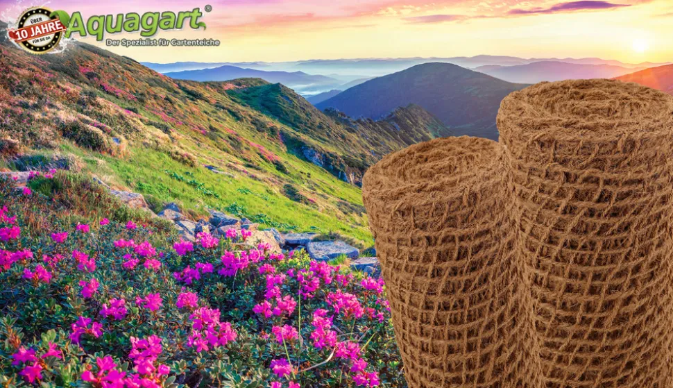 Natte en fibre de coco polyvalente d’Aquagart. Une alternative parfaite pour les bassins de jardin et la protection des plantes Que ce soit comme couverture pour le liner de bassin de jardin ou comme protection contre l’érosion pour les pentes et les talus, comme support pour les plantes ou comme sac à plantation pour les plantes aquatiques, notre natte en fibre de coco vous aidera dans tous vos projets. Des nattes en fibre de noix de coco pour les plantes. Naturelles et robustes Nos nattes pour bordure de bassin de haute qualité pour les étangs de jardin et similaires sont réalisées en fibre de coco 100 % naturelle avec un grammage élevé. Le tissu en fibre de noix de coco tissé de manière très serrée est extrêmement stable et résistant à la déchirure, de sorte qu’il offre un excellent soutien et une protection optimale au sol et aux plantes. Utilisation simple et polyvalente des nattes en fibre de noix de coco Les nattes anti-érosion sont utilisés pour stabiliser les berges nouvellement réalisées et les pentes remblayées. Le tissu en fibre de noix de coco à grosses mailles offre un soutien optimal aux racines des plantes qui protègent ainsi également la pente contre l’érosion avec leurs racines qui se forment au fil du temps. De plus, le filet anti-érosion placé en bordure de bassin évite le glissement du sol, comme par exemple sur les rives d’un lac ou d’un étang. Il sert de support aux plantes aquatiques de l’étang et permet à la rive de l’étang de se développer naturellement. Les nattes de bordure de bassin protègent également le liner de bassin.Caractéristiques : Matériau : 100 % noix de coco (fibre naturelle)Largeur du rouleau : 1,0 m de large / maille: environ 3 cm x 4 cmGrammage : environ 450 g / m²Protection naturelle contre l’érosionStable et résistant à la déchirurePratique et facile à poserProtège le liner du bassinFibres de noix de coco étroitement entrelacéesProduit naturel
