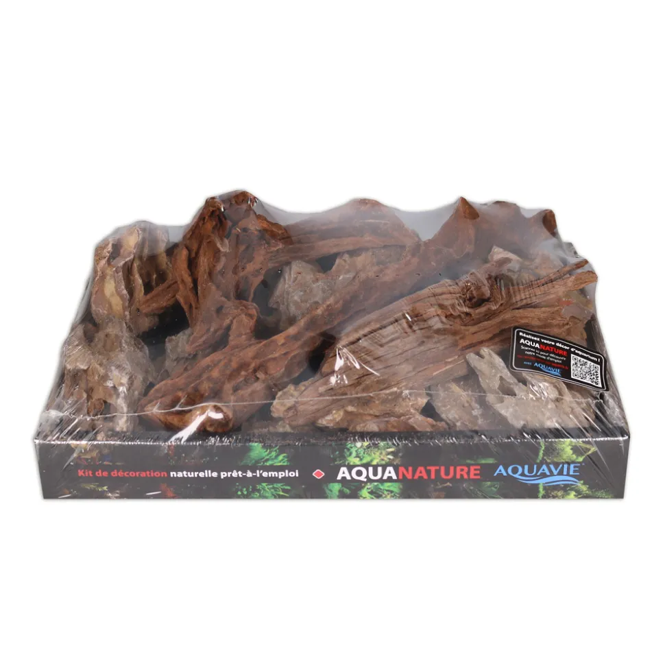 Ce kit pour aquarium est composé d’une sélection de racines et de pierres naturelles spécialement étudiées pour réaliser un beau décor d’aquascaping. Conditionné dans une barquette prête à l’emploi pratique, recyclable et transportable, il vous permettra de créer avec facilité un assemblage harmonieux et naturel de votre aquarium. Grâce à sa notice d’utilisation et ses propositions de montage, ce kit est idéal pour accompagner les aquariophiles, même débutants.