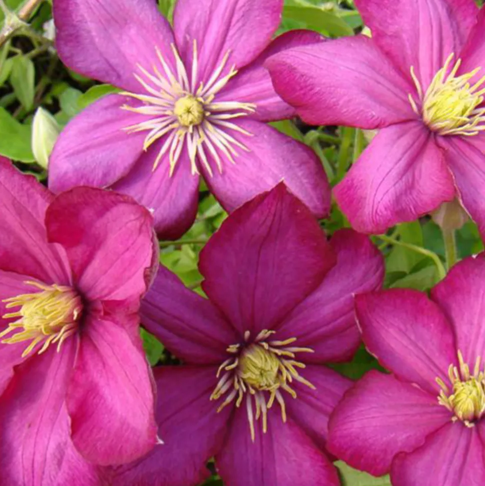 Découvrez la clématite ‘Ville de Lyon’, une plante grimpante exceptionnelle qui vous surprendra par la splendeur de ses fleurs. Cette variété se distingue par ses grandes fleurs d’un rouge carmin vif saisissant, dont le diamètre atteint 10 à 13 cm. L’éclat de leur couleur est d’autant plus prononcé sur les bords des sépales, offrant un spectacle visuel des plus enchanteurs. Ses anthères de couleur jaune contrastent délicatement avec le rouge des pétales, attirant ainsi abeilles et papillons pour le plus grand plaisir des amateurs de nature.La clématite ‘Ville de Lyon’ se plaît en exposition ensoleillée à mi-ombre, capable de s’épanouir dans un sol neutre à calcaire et bien drainé. Elle allie à la fois une grande résistance au froid et une capacité à prospérer avec peu de taille, ce qui en fait une plante à la fois robuste et facile d’entretien. Idéale pour habiller vos murs, treillis ou pergolas, elle apporte une touche d’élégance et de couleur qui ne manquera pas de captiver le regard.Placer cette clématite dans votre maison ou votre jardin, c’est choisir un embellissement durable et spectaculaire. Son feuillage verdoyant et ses grandes fleurs carmin inviteront une palette de couleurs vibrantes et naturelles qui sublimeront votre espace extérieur. Parfaite pour créer un écrin de nature chez soi, la clématite ‘Ville de Lyon’ est l’ajout parfait pour ceux qui cherchent à conjuguer esthétique et biodiversité.