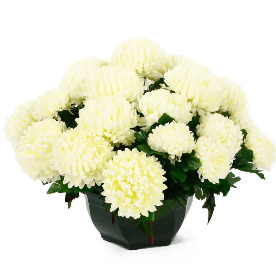 Cette coupe de 28 chrysanthèmes blancs est à la fois élégante et facile d’entretien grâce à ses fleurs en polyester. Très populaire à la Toussaint, cette composition est également idéale pour agrémenter un intérieur. Ce produit a été pensé par des spécialistes de la fleur artificielle. Créé et assemblé à la main par des fleuristes, son aspect est au plus proche des compositions en fleurs naturelles. Dimensions : H 35cm, ø 20cm