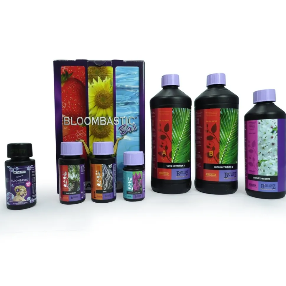 Cette B’Cuzz Box coco Atami permet la fertilisation des cultures maraichères, florales ou fruitières en substrat fibres de coco. Ce pack engrais contient les engrais Bi-composant A+B ainsi que les stimulants et boosters pour la croissance et la floraison.