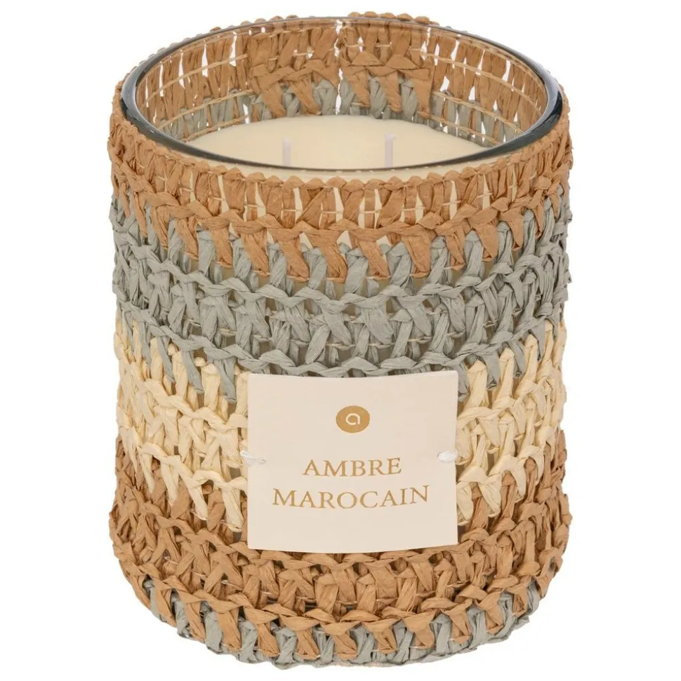 La bougie parfumée* « Zaya » Atmosphera vous procurera jusqu’à 65 heures d’un doux parfum ambré et d’une lumière tamisée. Placée dans un photophore en verre entouré d’un tissage coloré dans des tons chaleureux, elle contient 470g de paraffine qui se consumeront grâce à deux mèches en coton. Installez cette bougie sur un plateau en bois exotique ou au centre d’une table basse pour créer une ambiance conviviale dans votre intérieur.