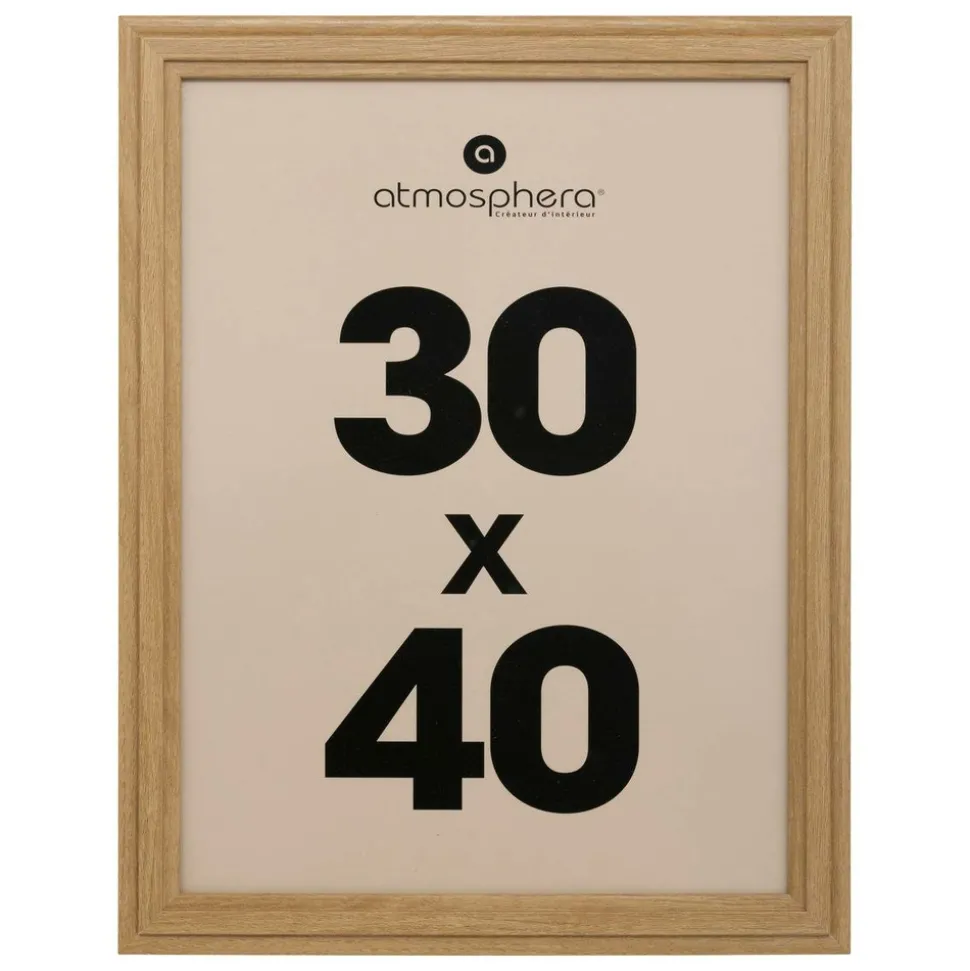 Mettez vos tirages préférés en valeur avec le cadre photo « Alix » Atmosphera ! Chaleureux et pratique, il est conçu pour exposer une photo au format 30 × 40 cm. Vitré, son cadre en bois à moulures peut être suspendu dans le sens de votre choix et vous pourrez l’associer à des cadres photo de la même ligne, proposés dans plusieurs dimensions standards, afin de composer un ensemble personnalisé.