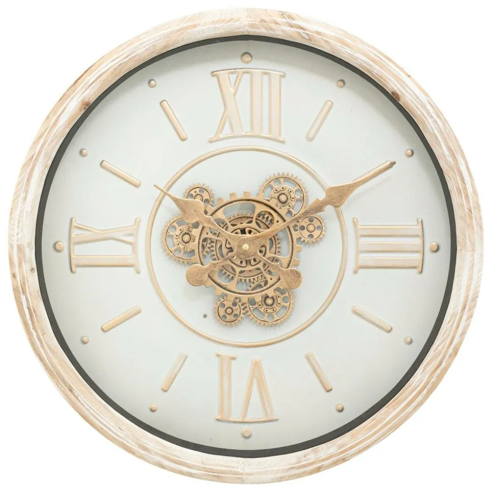 Avec son look vintage, l’horloge « Sonika » Atmosphera est l’accessoire idéal pour habiller un pan de mur d’une touche chaleureuse ! Ronde et de format harmonieux, elle se distingue par son cadre effet bois patiné et son mécanisme à engrenages mobiles en laiton. Dotée d’un mécanisme ABS silencieux et protégée par une vitre en verre, elle sera du plus bel effet dans une cuisine, une entrée ou un bureau. Associez-la à un buffet en bois et métal pour jouer sur un mix de matières d’esprit industriel.