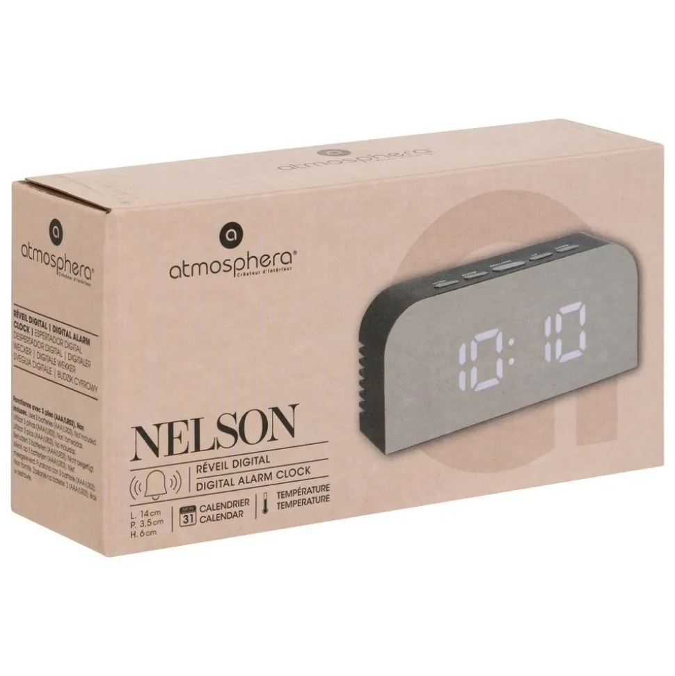 Pratique et compact, le réveil digital « Nelson » Atmosphera joue la carte d’un design moderne et épuré. Ce réveil dispose de plusieurs fonctions et se recharge grâce au câble USB fourni. Avec ses lignes arrondies et sa façade en verre, il trouvera sa place sur une table de chevet pour accompagner vos réveils en douceur.