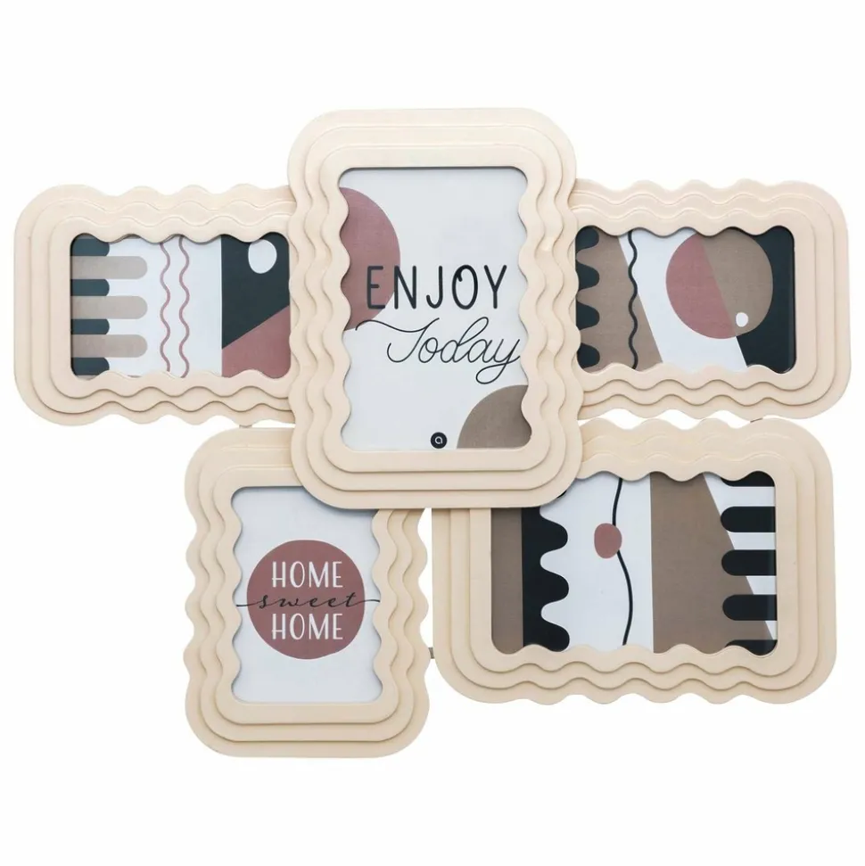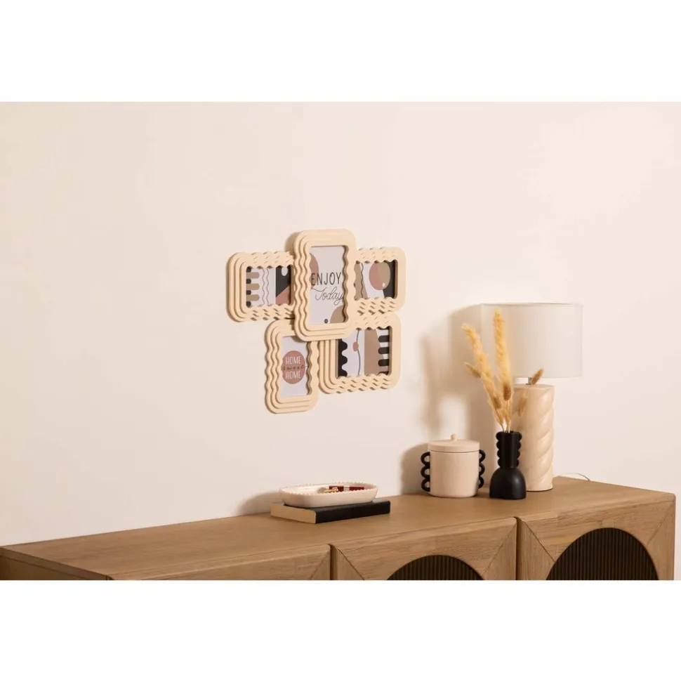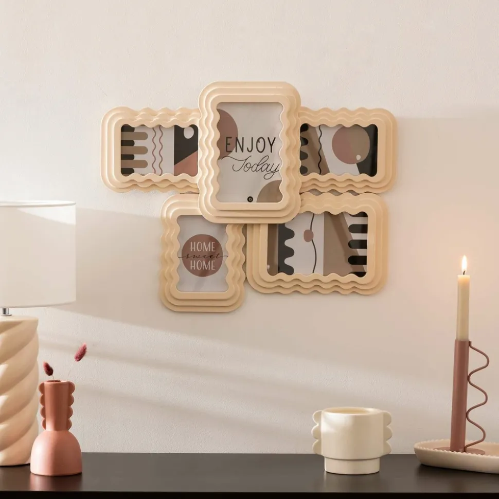 Le pêle-mêle en bois Wavy est pratique pour exposer joliment vos plus beaux souvenirs. Pouvant accueillir jusqu’à 5 clichés, les cadres sont en forme de vagues pour donner un effet très moderne à l’ensemble. À accrocher au mur, en position verticale ou horizontale.