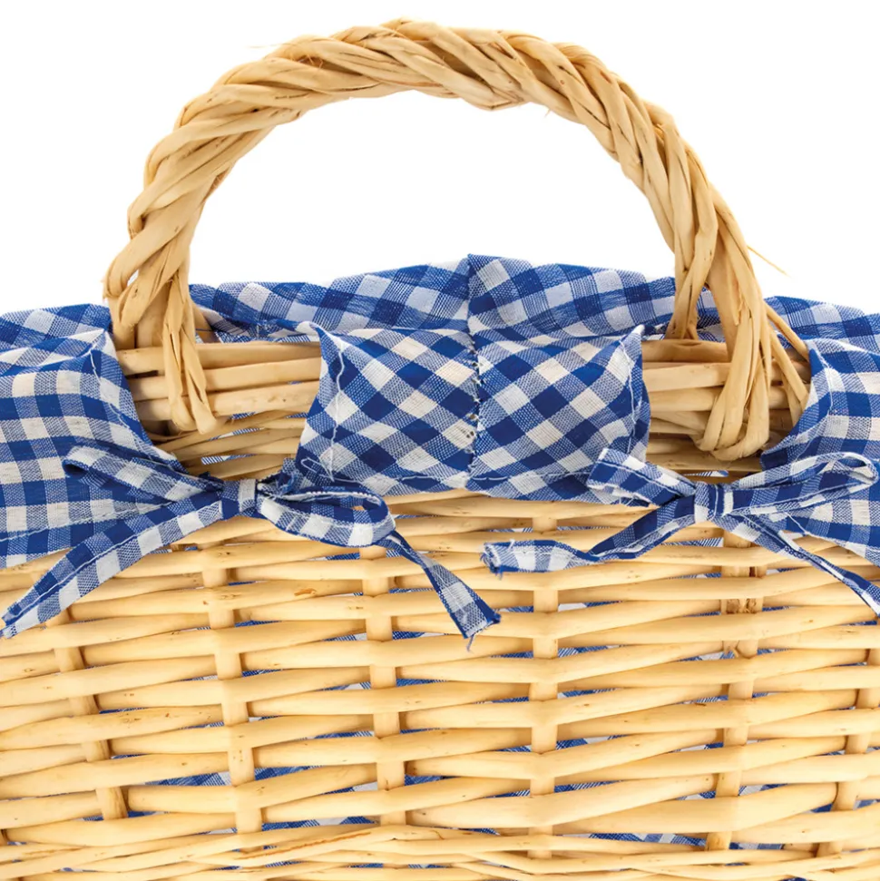 Corbeille à linge en osier clair avec doublure en coton vichy