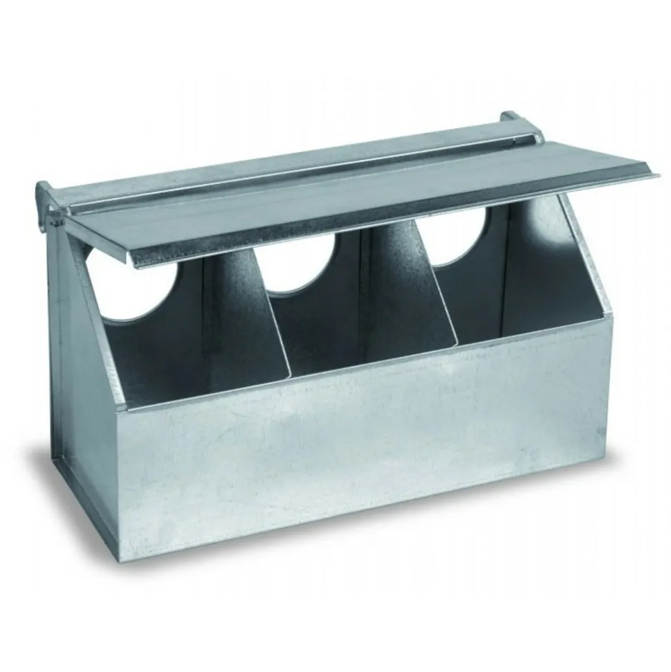 Mangeoire pigeons et perdrix 3 compartiments métal.