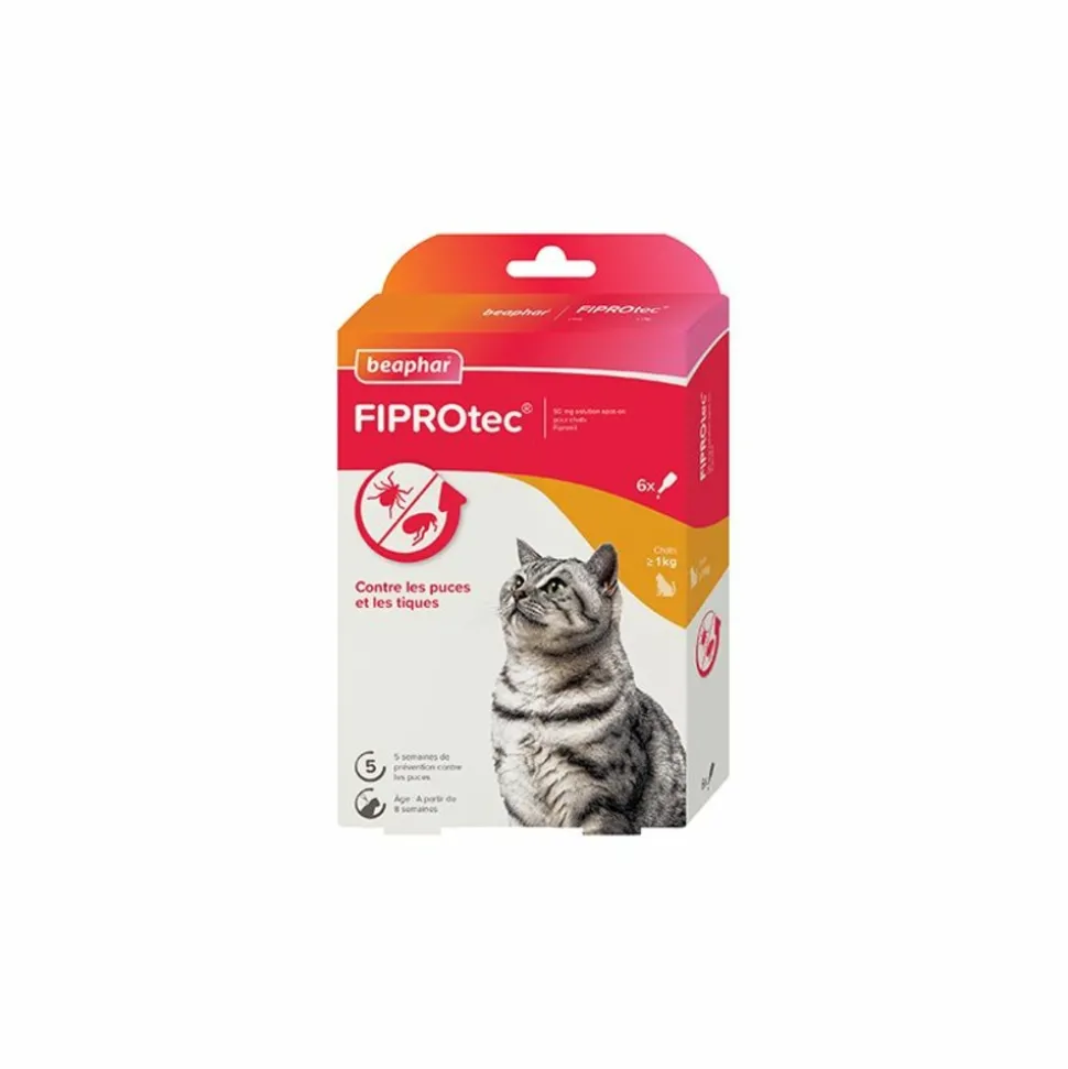 FIPROTEC CHAT – BEAPHAR est une pipette antiparasitaires pour lutter contre les infestations de puces et tiques pour les chats.