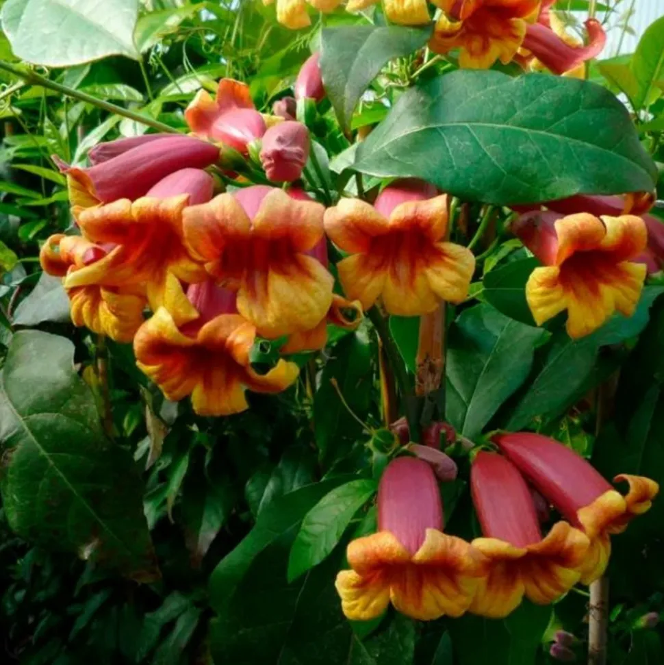 Bignone de grande végétation à croissance rapide endémique d’Amérique du Nord. Son feuillage persistant est composé de feuilles divisées en 2 à 3 folioles de 10 à 15 cm de long. Cette bignone orangée ne cesse d’étonner par son originalité et son curieux parfum rappelant le cacao. Ses grappes de fleurs tubulaires aux couleurs chaudes feront leur effet côté jardin.