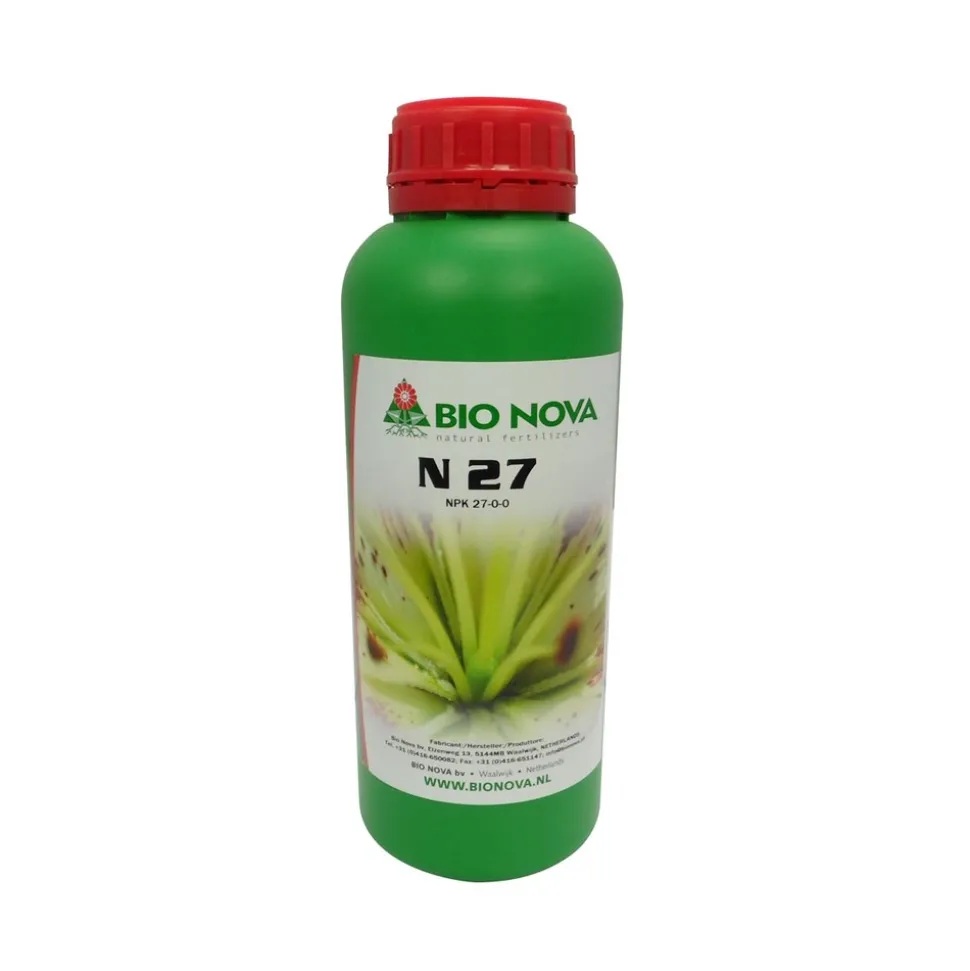 Fertilisant minéral liquide à base d’azote. L’azote est l’élément de base dans la formation de la chlorophylle, il est présent dans le noyau des chromosomes, l’ADN et les vitamines. Son rôle est important dans la régulation de l’osmose mis en place par les végétaux.