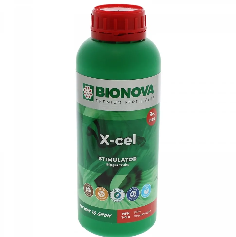 X-CeL Bio Nova 1 litre est un stimulant de pousse et de floraison organique sans hormone avec une base naturel comme les algues fermentées qui apporteront un très grand nombre d’éléments sous forme d’hydrocarbonés qui stimuleront la croissance et la floraison. Ce stimulateur peut être utilisé avec tous les programmes de fertilisation en culture d’intérieur et d’extérieur.