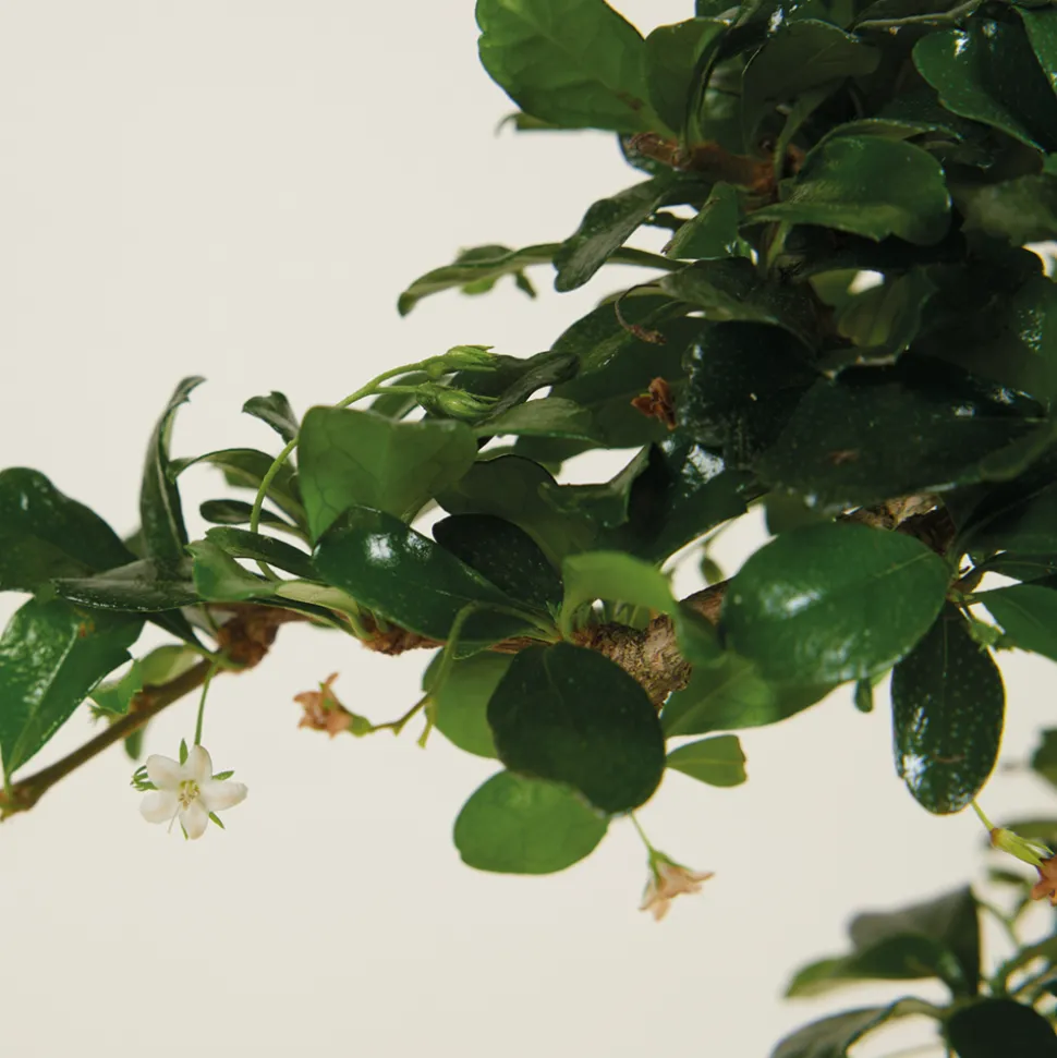 Le bonsaï ‘Carmona macrophylla’ en forme de S, également connu sous le nom de Fukienthee, est un bonsaï gracieux avec un tronc sinueux frappant qui forme une élégante forme en S. Les feuilles brillantes vert foncé et la capacité de porter de petites fleurs blanches font de ce bonsaï un accroche-regard dans n’importe quel intérieur. L’arbre est fourni dans un pot en céramique avec une soucoupe assortie, à la fois belle apparence et fonctionnelle pour l’évacuation de l’eau. Caractéristiques- Livré à la pièce- La hauteur de livraison de cette plante est de 20-30 cm (mesurée du fond du pot de culture jusqu’au sommet de la plante)- Livré dans un bol en céramique de 15 cm- Facile à entretenirSoins – Eau : Moyenne. Le terreau doit toujours rester légèrement humide. – Emplacement : Lumière indirecte vive. Placez le bonsaï dans un endroit lumineux, mais évitez la lumière directe du soleil. – Entretien : Peu. Taillez pour garder le bonsaï en bonne forme. Comment nous expédionsGrâce à notre technologie d’emballage intelligente, vos plantes restent en place et arrivent à destination sans plis. Nous utilisons des emballages spécialement conçus pour les plantes. De cette façon, ils reçoivent de la lumière le plus longtemps possible et les racines, les feuilles et les fleurs de la plante restent protégées pendant leur voyage du producteur jusqu’à vous.Chaque plante est unique. Les différentes conditions de croissance peuvent entraîner un résultat différent de celui indiqué sur la photo. Par conséquent, avant d’acheter, vérifiez soigneusement si ces plantes conviennent à votre maison ou à votre jardin.