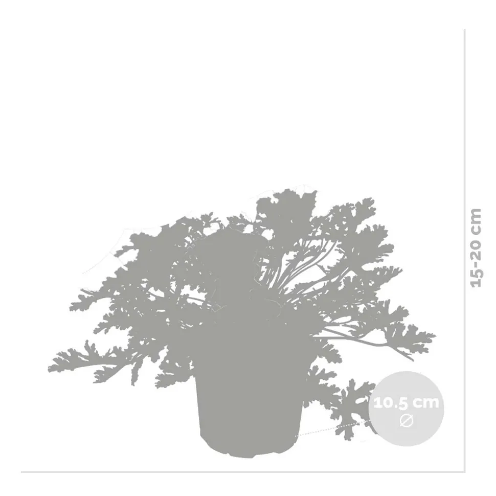 Fini les moustiques avec le Pelargonium Graveolens parfumé ! Le géranium citron est un anti-moustique naturel. Ne souffrez plus jamais de ces petits tueurs, lorsque ce géranium citron brille dans votre jardin. Les feuilles de ce géranium citron ont de petits poils. L’odeur de la plante est libérée par friction – en touchant simplement la plante et en frottant l’odeur sur vous-même, vous vous débarrasserez des moustiques en un rien de temps. Ce champion anti-moustiques est non seulement adapté pour garder les moustiques à l’extérieur, mais peut également être utilisé dans votre chambre.Caractéristiques- Livré par 3 pièces- La hauteur de livraison de cette plante est de 15-20 cm (mesurée du bas du pot de culture au sommet de la plante)- Livré dans un pot de culture de ⌀10,5 cm- Parfumé- Anti-moustiques- Pour l’intérieur et l’extérieur- Période de plantation : printemps – été- Période de floraison : Mai – Octobre- Plantes par m2 : 5 piècesSe soucier- Eau : En temps normal 1 à 2 fois par semaine et pendant les périodes chaudes prolongées 2 à 3 fois par semaine, dont quotidiennement en cas de sécheresse extrême (au moyen d’un tuyau d’arrosage ou d’un pulvérisateur)- Emplacement : Mi-ombre – soleil (maximum 4-6 heures d’ensoleillement par jour).- Entretien : Pour une éventuelle seconde floraison, nous conseillons de retirer les fleurs fanées. Pour une floraison extra riche, il est recommandé de mélanger régulièrement de la nourriture végétale dans l’eau d’irrigation en été.