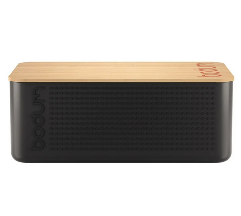 Boîte à pain Bistro Bodum 11740-01. Boîte à pain 2 en 1 : pour conserver le pain et le découper grâce à son couvercle qui sert également de planche à pain ! Idéale pour conserver tous vos pains, baguettes et viennoiseries grâce à sa grande capacité ! Pratique avec son couvercle double fonction : retournez-le pour vous en servir de planche à découper le pain ! Compacte pour un plan de cuisine toujours bien rangé ! Cette boîte est très stable et facile à nettoyer. La valve, sur le côté de la boîte, permet de réguler l’arrivée d’air et de ventiler le pain afin que celui-ci ne devienne ni trop mou, ni trop dur. Couvercle en bambou, écologique et naturel. Boîte à pain en plastique.
