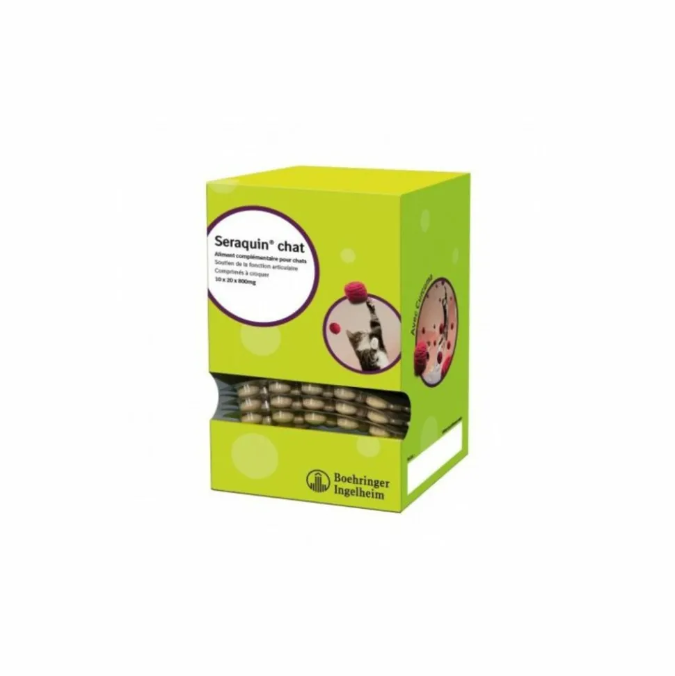 SERAQUIN CHAT (NF) – BOEHRINGER est un complément alimentaire 100 % naturel en comprimés pour chat pour aider à entretenir et consolider les articulations de votre chat.