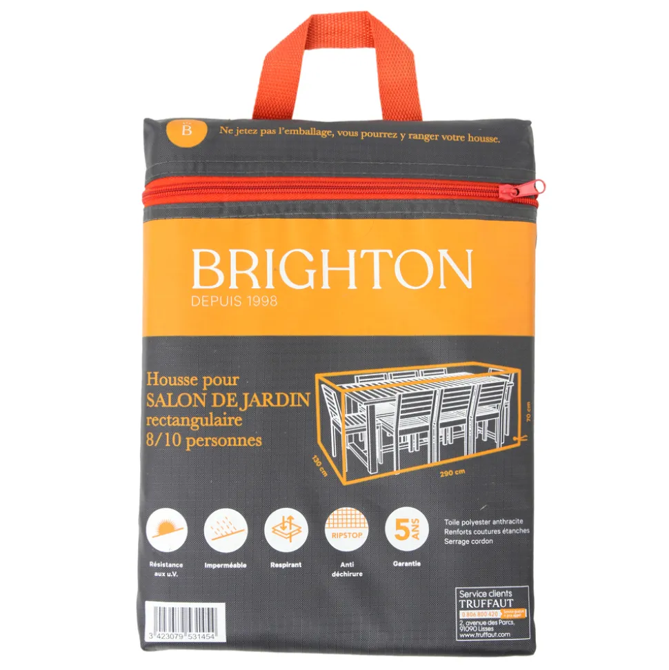 Les housses de protection Brighton sont conçues pour être pratiques et faciles d’utilisation. Leur toile est fabriquée partir d’un tissu résistant aux rayons UV, imperméable, respirant et anti-déchirures. Elles se distinguent par leur excellent rapport qualité prix pour vous permettre de doter vos équipements de jardin de la meilleure solution de rangement et de protection possible. Housse de protection pour salon de jardin 8/10 pers.
