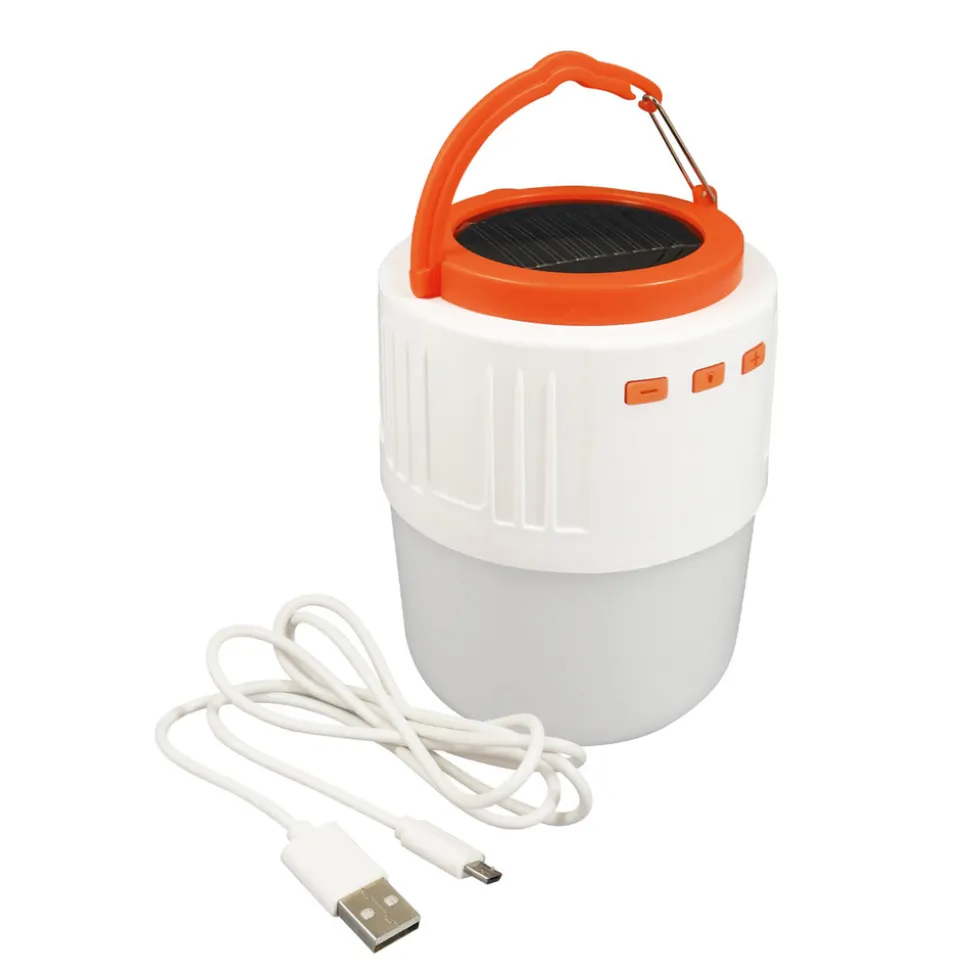 Rechargeable grâce à son panneau solaire ou avec un câble USB. Fonctionne avec une batterie lithium et un câble USB inclus.
