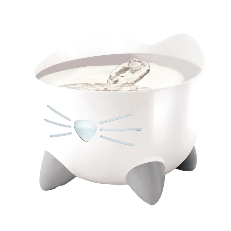 L’abreuvoir PIXI à jet d’eau et filtre est l’un des produits phares de la marque CatIt, qui propose également des distributeurs de croquettes ludiques, des gamelles, des caisses de transport et de l’alimentation pour chats.