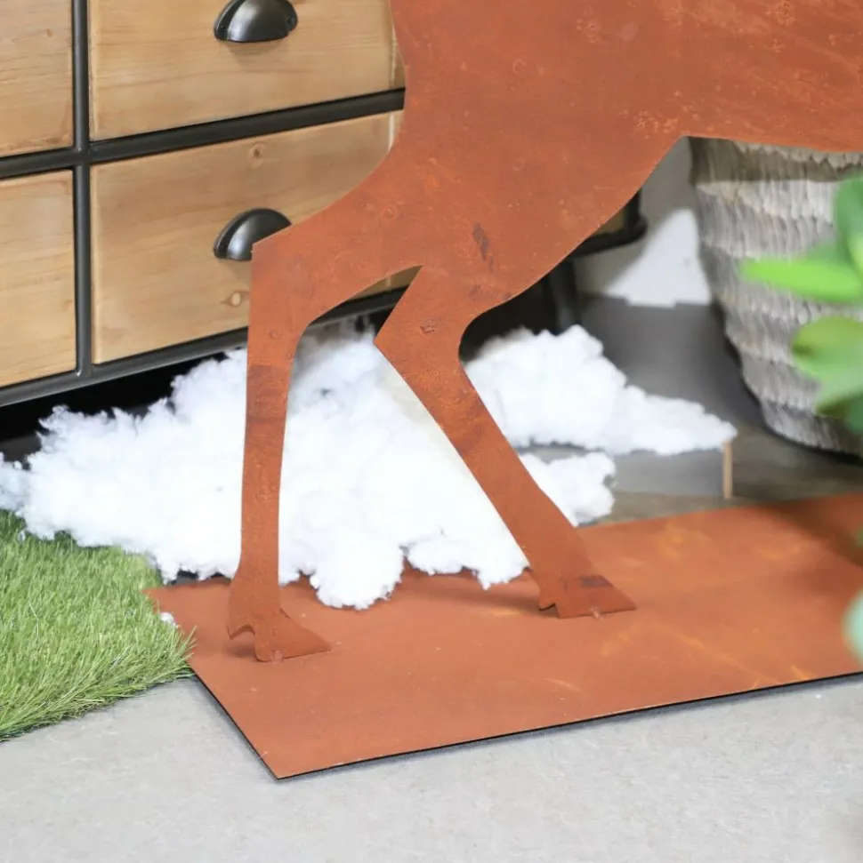 Utilisation : Parfait comme pièce maîtresse pour votre décoration intérieure ou extérieure, ce cerf en métal rouillé attire tous les regards. Placez-le dans votre salon, sur votre terrasse ou dans votre jardin pour ajouter une touche de charme rustique et de majesté naturelle à votre espace. Son allure imposante en fait également un choix idéal pour les halls d’entrée, les jardins d’hiver ou les grands espaces ouverts où il peut dominer l’ambiance avec son allure gracieuse et sauvage.