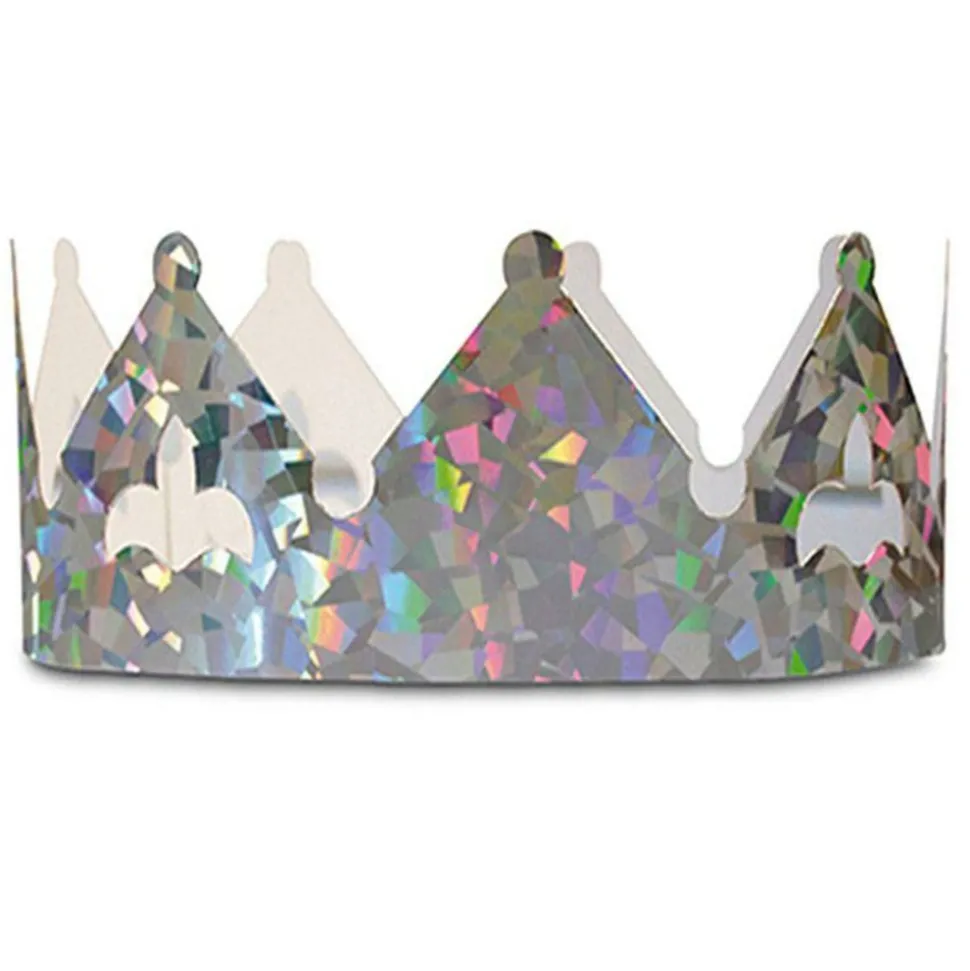 Lot de 2 couronnes aux décors argentés holographiques. Deux encoches pour la fermer, une à 46 cm et une à 52 cm. A vous de faire la galette !