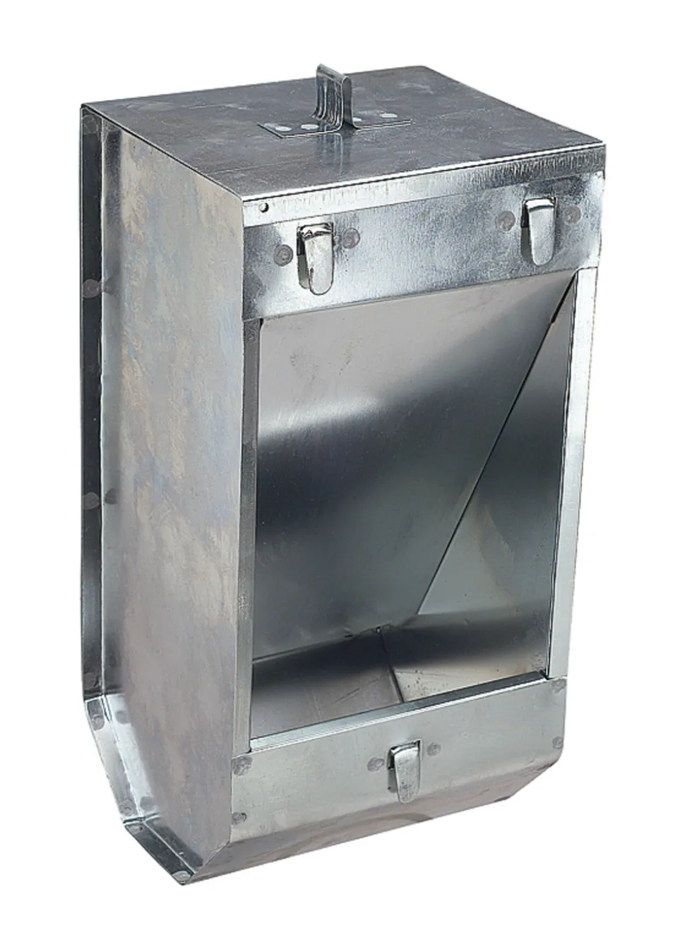 Mangeoire à 1 compartiment, de grande taille, pour lapin ou lapin nain. Cette mangeoire s’installe à l’extérieur d’un clapier ou d’une cage à l’aide de ses fixations. Cette mangeoire, ou trémie, est en métal galvanisé, elle est donc très résistante. Elle est équipée d’un couvercle qui permet de garder la nourriture propre et sèche et de garantir un remplissage facile. Cette mangeoire pour lapin est idéale pour un à 2 lapins ! Caractéristiques de la mangeoire pour lapin à 1 compartiments : Dimensions : hauteur 23 cm, profondeur 11 cm. largeur 13 cm. Nombre de compartiments : 1 Matériel : métal