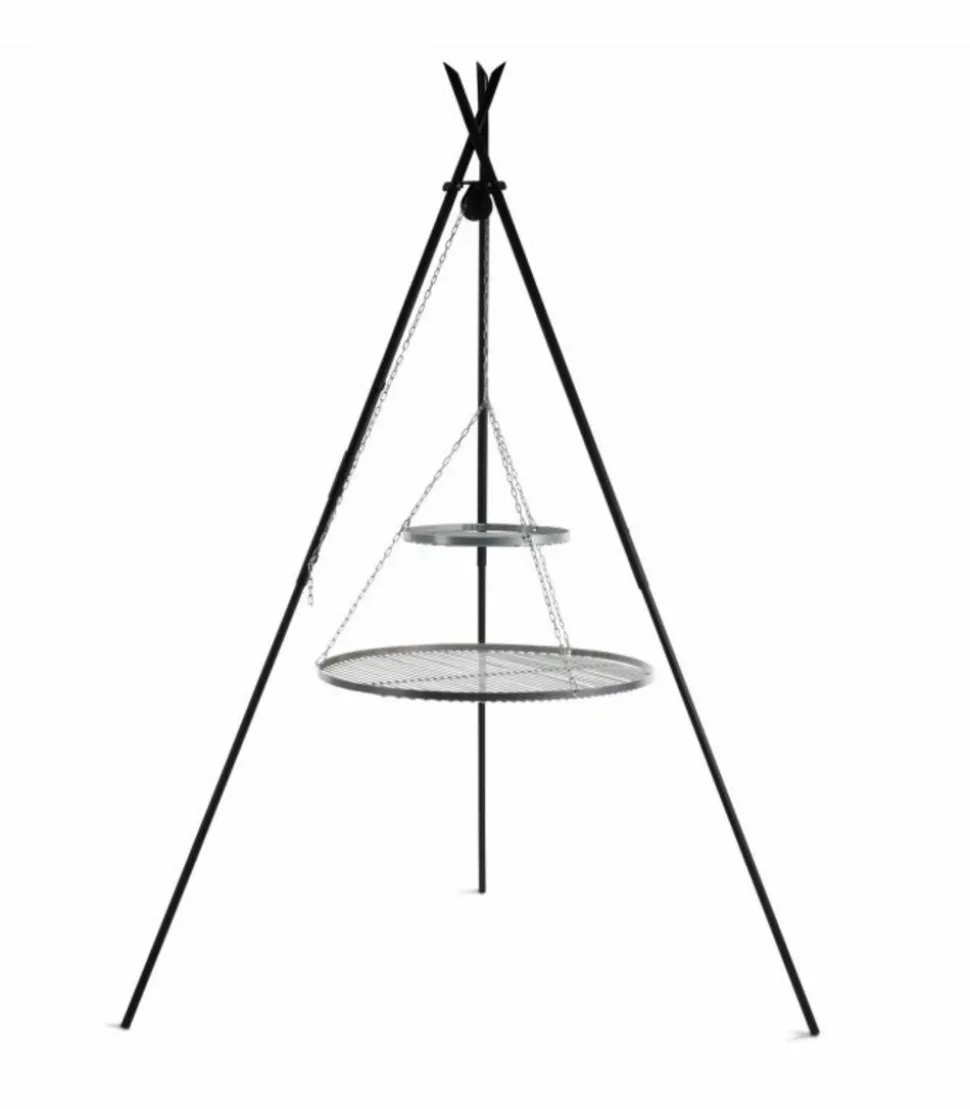 Détails techniques :Hauteur du trépied : environ 210 cmDiamètre des grilles : 40 cm et 70 cmÉpaisseur des baguettes : 4 mmMatière de la grille : acier inoxPoids : environ 14 kgTrépied revêtu de poudre : OUITrépied pliable à moitié : OUIFINITION DE HAUTE QUALITÉ, FABRIQUÉ EN EUROPEDescription :La grille barbecue de jardin à trépied est une solution idéale pour passer des soirées agréables en plein air, que ce soit en famille ou entre amis. Elle est fabriquée en acier inox de 210 cm de hauteur. Les tôles sont adaptées pour le bois, ainsi que pour le charbon de bois. Le trépied est revêtu de poudre, ce qui crée une protection résistante aux intempéries. Grâce à ses deux zones de cuisson incluses le barbecue permet contrôler aisément la cuisson des grillades ou bien faire reposer un repas, il est aussi parfaitement adapté à une utilisation par plusieurs personnes en même temps. Le trépied stable peut être placé sur tout type de surface. Pour parfaire cet équipement en quelques gestes, le trépied est démonté et remonté, ce qui facilite le stockage et le transport. Des décorations avec des éléments forgés font de cette grille un plaisir pour la vue. Le réglage de la grille barbecue vous permet de changer sa hauteur facilement.