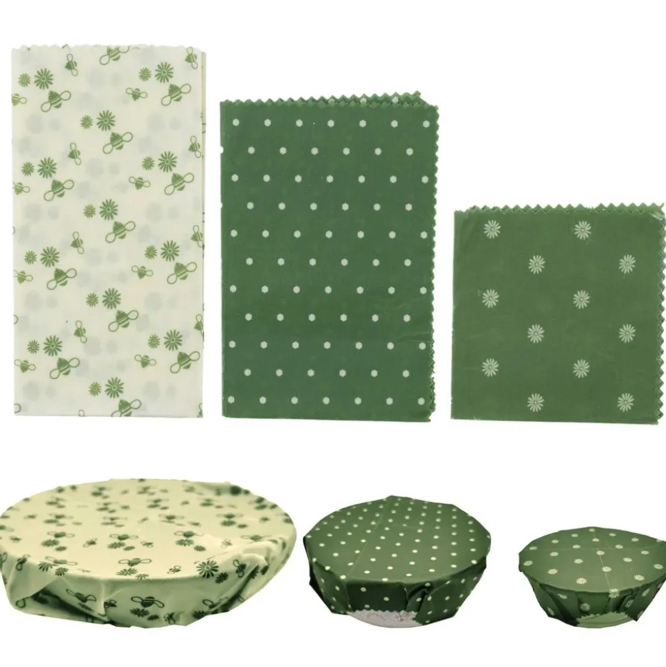 Changez vos habitudes et optez pour ces 3 couvercles à base de cire d’abeille ! Dimensions : 35x35x0.1cm