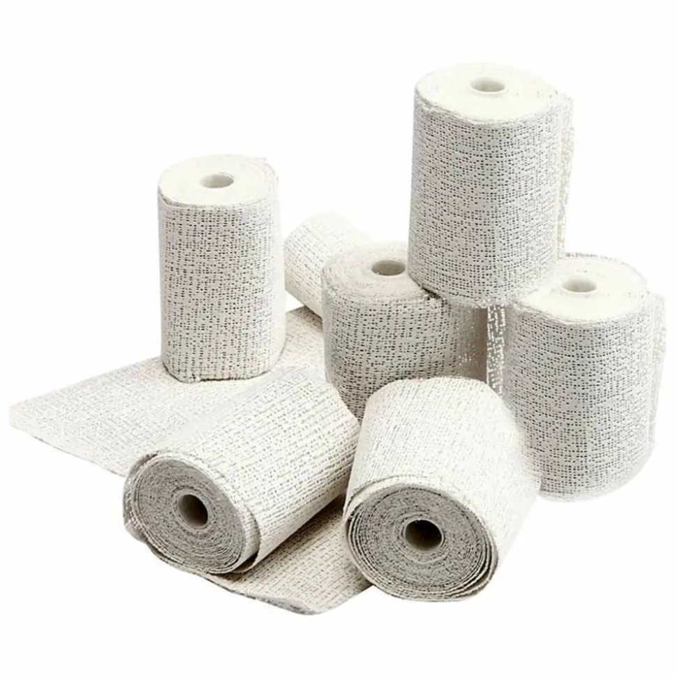80 bandes plâtrées en rouleau 2,7 m. Bandes de coton ajouré imprégnées de plâtre. Utilisez vos bandes pour créez les formes que vous souhaitez, il vous suffit de les humidifier. Créez toute la décoration que vous souhaitez comme par exemple des vases en forme d’艙uf d’autruche pour Pâques ou de dame Jeanne, des mains plâtrées, de pots. Contenu: 40 rouleaux de 5 cm de largeur. 20 rouleaux de 7,5 cm de largeur. 20 rouleaux de 10 cm de largeur. Longueur de chaque rouleau : 2,7 m