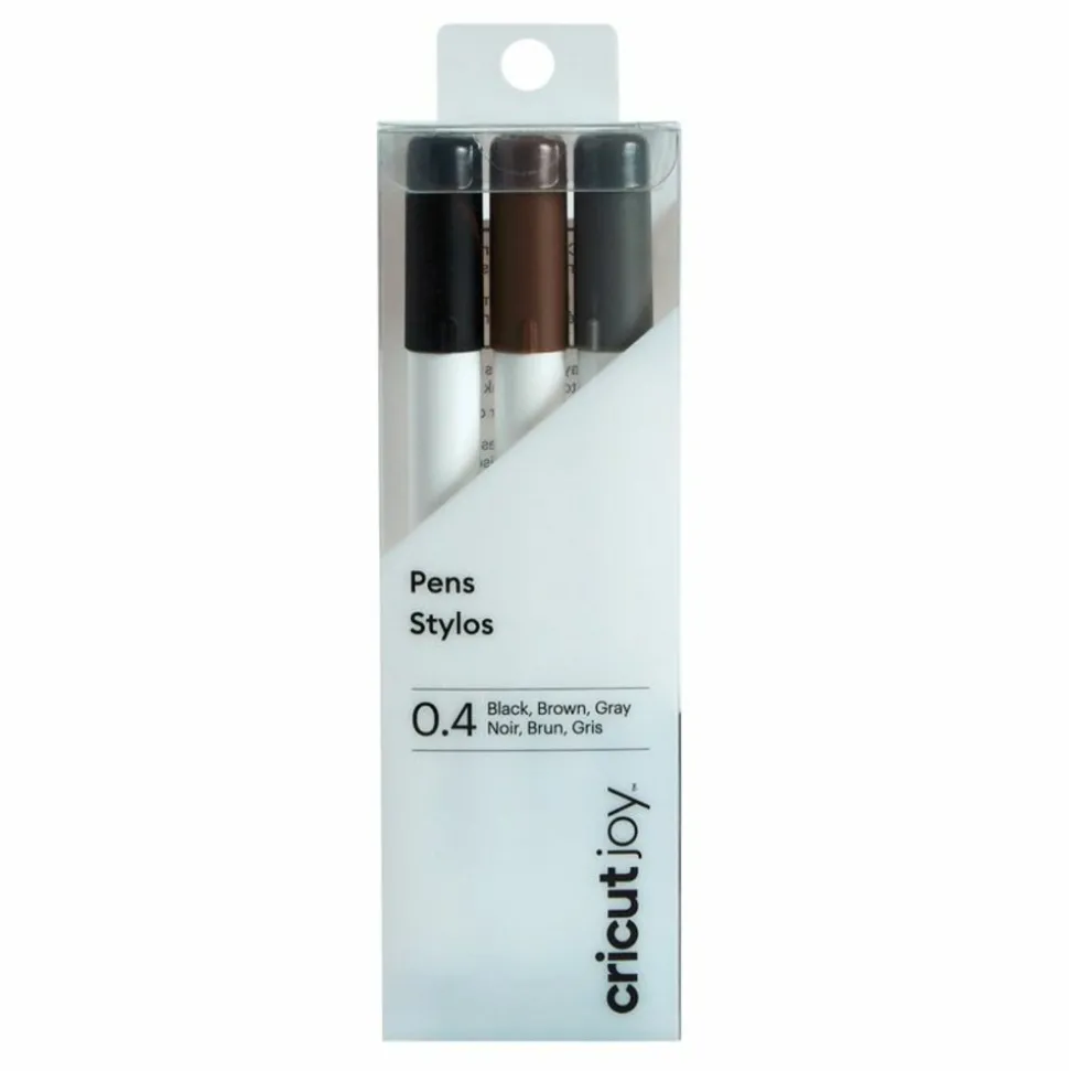 Grâce à ces trois stylos à pointes fines donnez une touche personnelle à vos créations. Ils seront parfaits pour tous vos projets que ce soit des invitations, des cartes ou des décorations. Pour les utiliser il vous suffira d’insérer le stylo dans le porte stylo Cricut Joy puis de sélectionner le dessin que vous souhaitez imprimer. Vous pourrez choisir parmi les ceux prêt à l’emploi qui vous sont proposés ou même importer les vôtres. Ces stylos sont compatibles avec la Cricut Joy. Découvrez également le reste de notre gamme de stylos et marqueurs ! Dimensions : 13,5 x 1 cm. Pointe de 0,4 mm. Couleurs : Noir, Marron et Gris. Référence Cricut : 2008068
