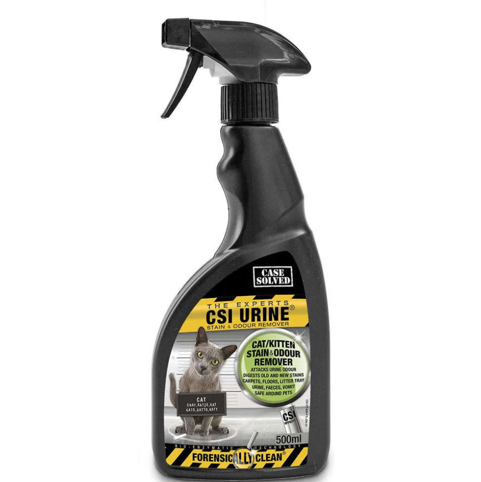 Le nettoyant CSI est l’arme pour le nettoyage de l’urine qui digère au sens propre les molécules responsables des taches et de la mauvaise odeur de l’urine. Efficace sur toutes surfaces, dures ou absorbantes, taches fraîches ou anciennes. 100% biodégradable et non toxique, ce produit est efficace sur l’urine des chats et chatons. Flacon de 500ml