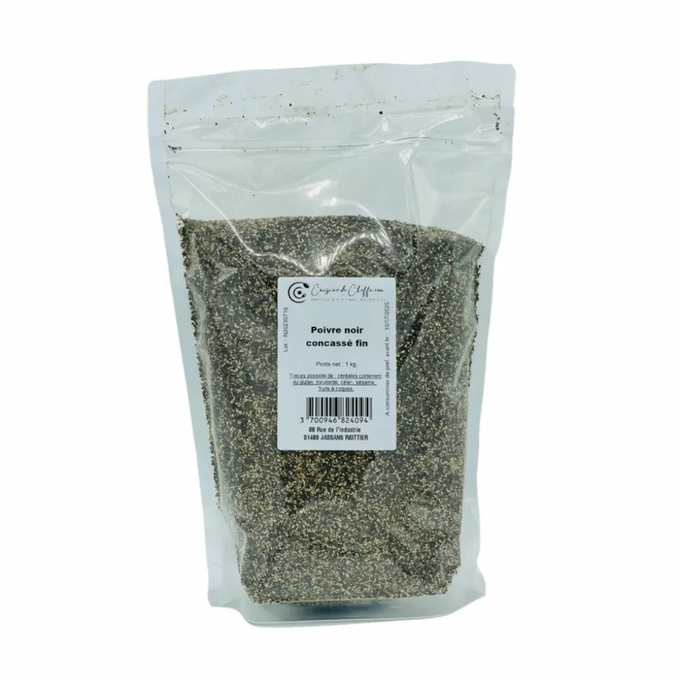 Le poivre noir, provient du fruit du Piper Nigrum, qui est récolté avant maturité puis séché pour obtenir la graine que tout le monde connait. Cette variété de poivre est la plus répandue dans le monde de la cuisine. Le poivre noir concassé est une épice indispensable dans votre cuisine et sur la table à manger. C’est le plus piquant et le plus aromatique des poivres. On l’ajoute pratiquement à tous les aliments, toutes les recettes : potages, viandes, légumes, vinaigrettes, sauces…