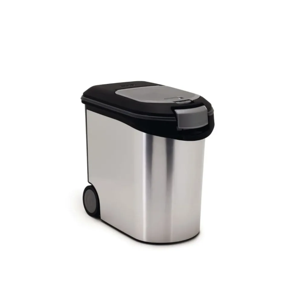 Avez-vous un ami quadrupède dans la maison ? Alors vous allez avoir besoin de ce récipient alimentaire pour animaux de compagnie commode de Curver pour garder votre maison sans sacs poussiéreux d’aliments pour animaux de compagnie. Le récipient alimentaire a une capacité de 35 L, ce qui le rend approprié pour la conservation d’aliments pour chats, chiens ou autres animaux de compagnie. Le rebord en caoutchouc crée un joint hermétique qui permettra de protéger la nourriture des animaux de la saleté, de l’humidité et des insectes. Le couvercle peut être ouvert et refermé rapidement, facilitant le remplissage du conteneur. Il y a un petit couvercle pour distribuer facilement la nourriture tout en le gardant des pattes espiègles. Il a également des poignées robustes sur les deux côtés qui seront utiles au moment de verser la nourriture dans le bol alimentaire. Équipé de roues, le conteneur peut être déplacé facilement. Ce récipient alimentaire en plastique durable est non seulement pratique, mais aussi attrayant, grâce à son aspect métallique.