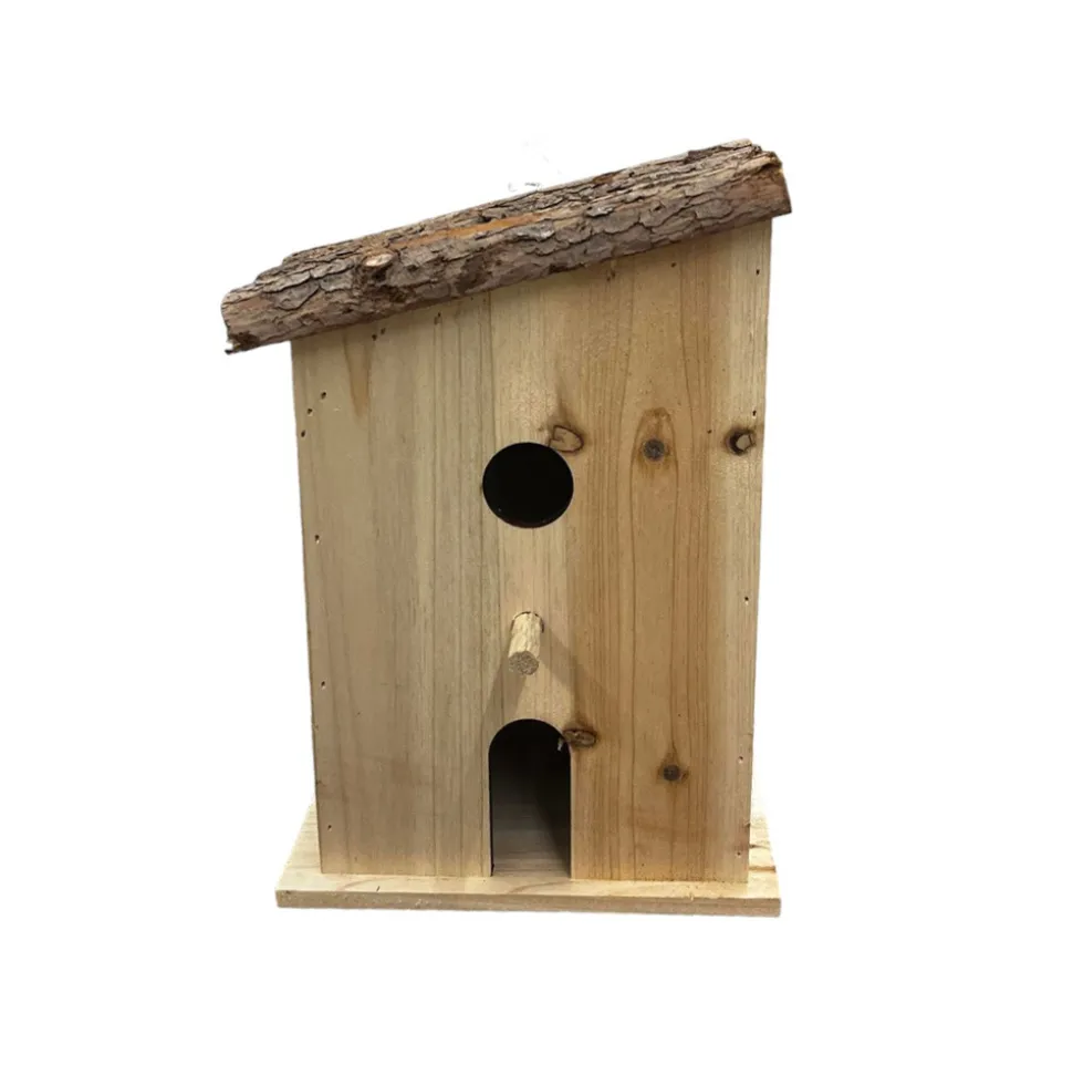 Nichoir maison en bois, facile à installer et à entretenir, il offre un abri spacieux pour favoriser la nidification et la préservation des espèces locales.