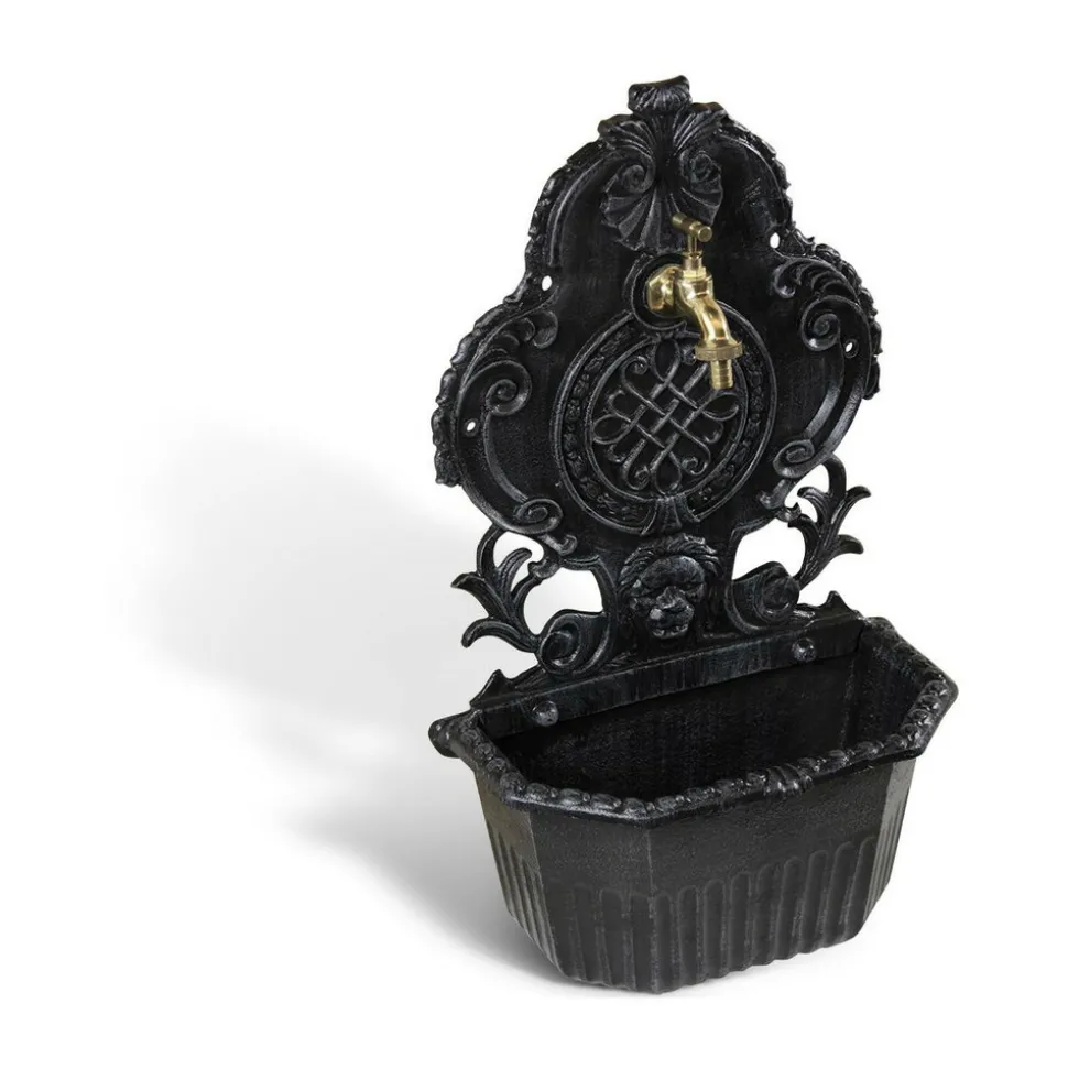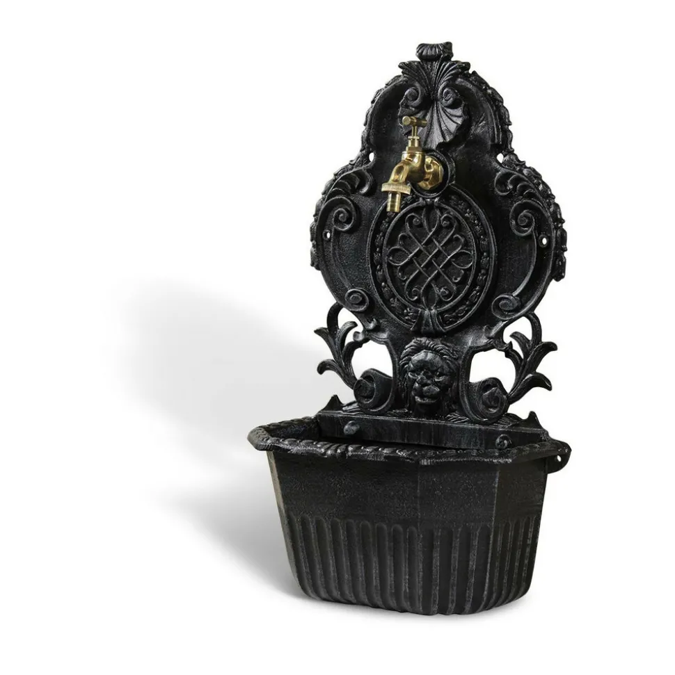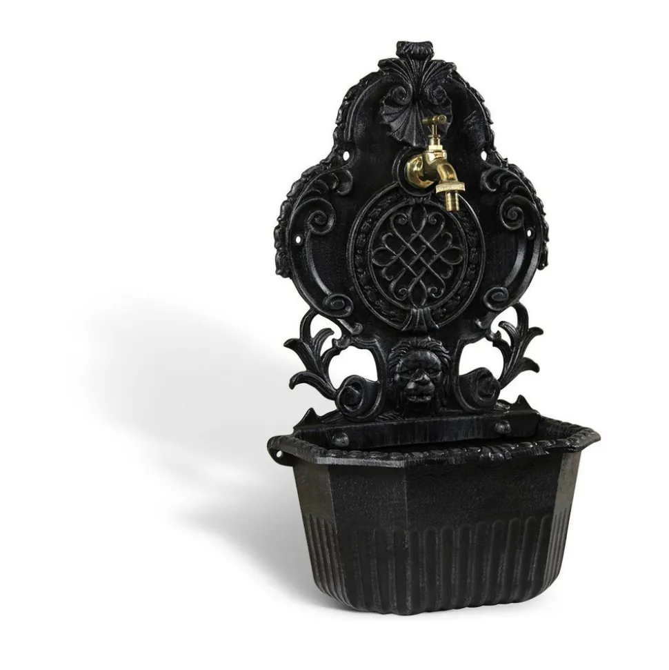 On tombe amoureux du contraste entre les motifs fluides de cette fontaine au style ancien et les lignes structurées de son évier !