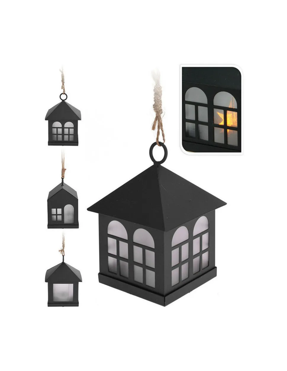 Petite Lanterne Maison Led 6x8cm (profondeur/hauteur) Noire Poids 60g Euro/U 1xcr2032