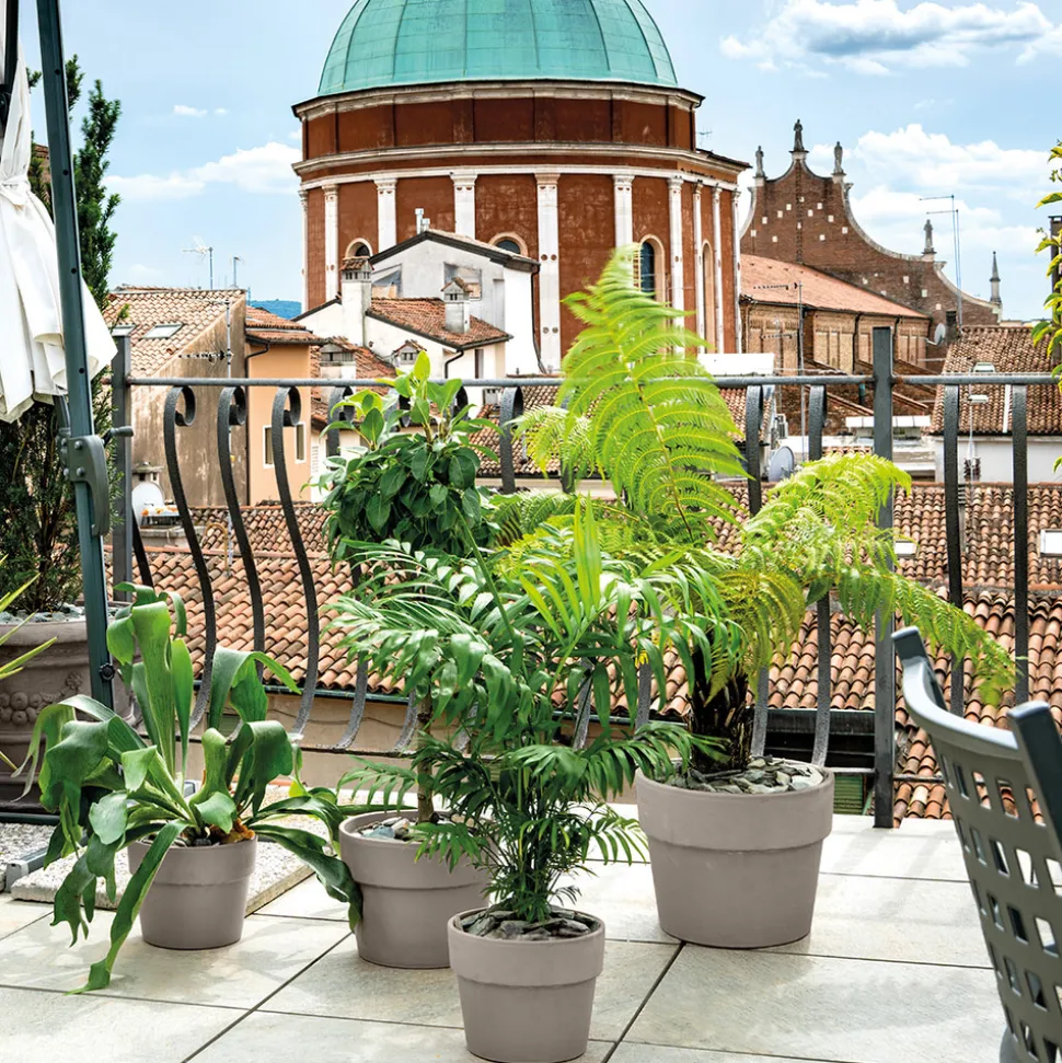 Le pot Perfetto en terre cuite industrielle saura mettre en valeur vos plus beaux végétaux tout en apportant une note contemporaine à vos intérieurs et extérieurs. Dans votre véranda, sur votre terrasse ou posé sur un meuble il s’adaptera à tout type de déco. Percé pour assurer le drainage du substrat de vos plantes, le pot Perfetto est à la fois design, résistant et performant pour le succès de vos plantations. Volume 6 litres.