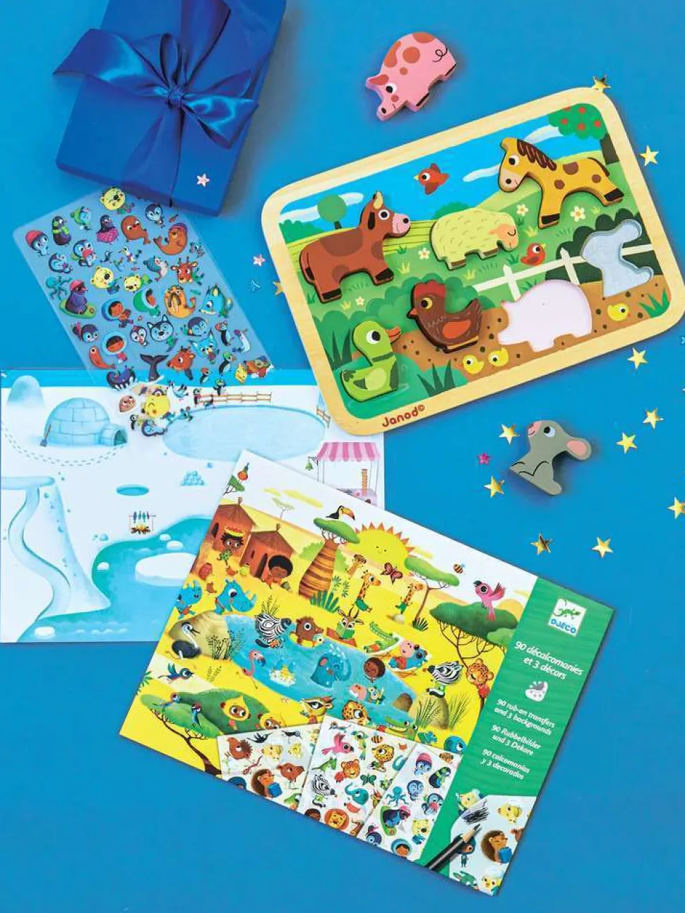 Cette pochette comprend 3 fonds imprimés (21 x 29,7 cm), 2 planches de décalcomanies soit environ 90 images.