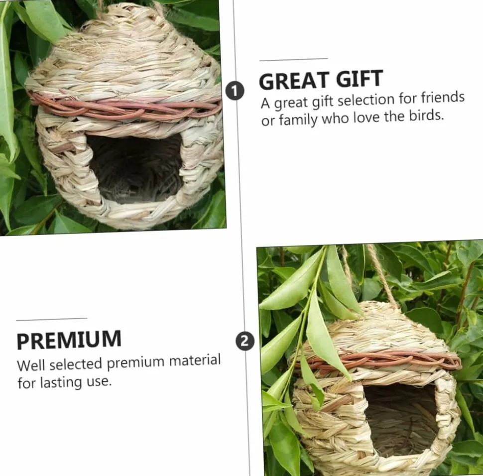 Nichoir tissé : un excellent cadeau pour les amis ou la famille qui aiment les oiseaux. Nid d’oiseau suspendu.Décoration de nid d’oiseau : les oiseaux peuvent s’y installer et ajouter une touche créative à votre jardin. Nichoir suspendu.Nid d’oiseau tissé : design créatif et chic, idéal pour décorer votre jardin. Suspension oiseau tissée.Nid d’oiseau naturel : son design artistique attirera davantage d’oiseaux dans votre jardin et apportera plus de vitalité à votre nichoir d’extérieur.Accessoire pour oiseaux : sans danger pour les oiseaux et leur offrant un abri confortable et chaleureux. Nichoir pour oiseaux.