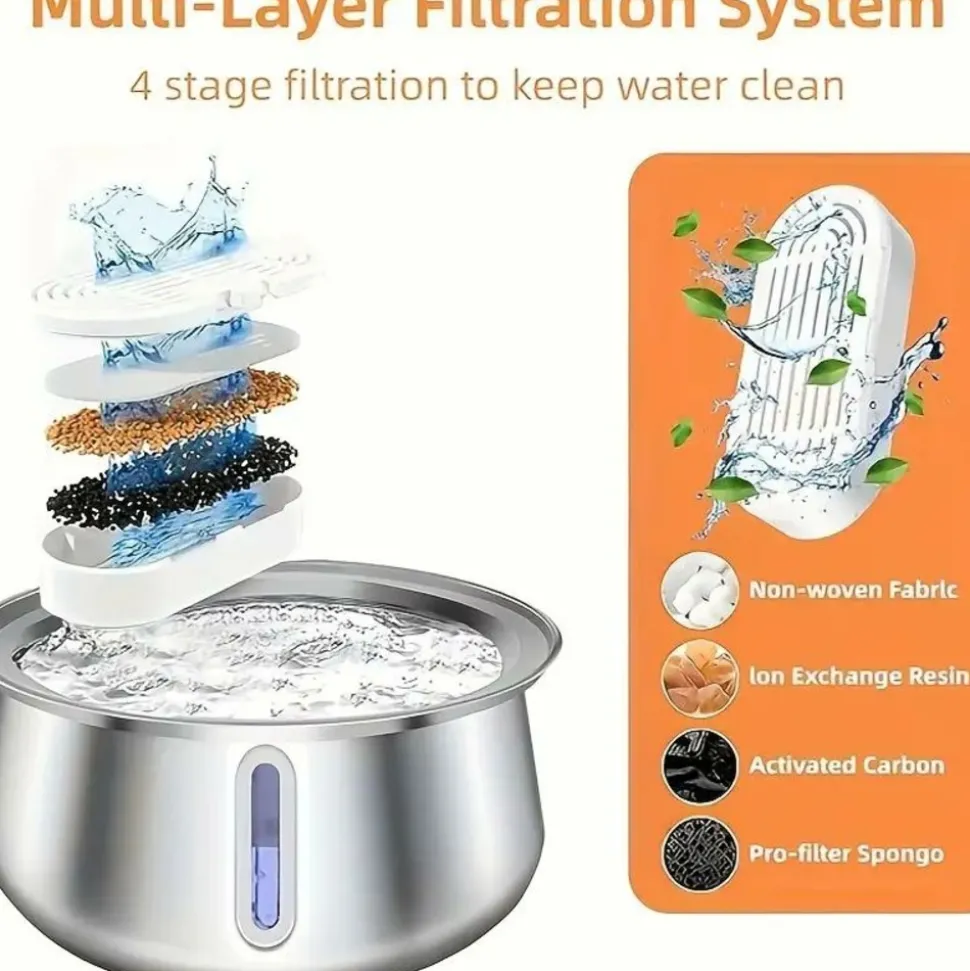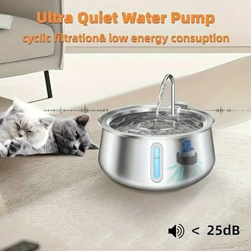 Cette fontaine d’eau pour chats en acier inoxydable est spécialement conçue pour les chats à l’intérieur, et est un excellent choix pour les propriétaires d’animaux de compagnie. Elle dispose d’une grande capacité de 4 litres (134 onces), réduisant le besoin de remplir l’eau fréquemment. La fenêtre de niveau d’eau spécialement conçue vous permet de voir clairement la quantité d’eau restante à tout moment, afin de la compléter à temps. Elle fonctionne de manière ultra – silencieuse, ne dérangeant pas la vie tranquille des chats. Le kit de robinet inclus permet aux chats de boire de l’eau en mouvement, stimulant leur intérêt pour boire. De plus, 6 filtres sont fournis avec soin, filtrant efficacement les impuretés et offrant de l’eau potable propre et saine aux chats.