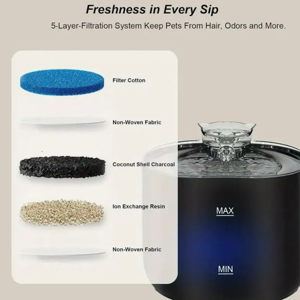 DOWNYPAWS – Abreuvoir Ultra Silencieux De 2,2 L/74 Oz Pour Chat, Avec Vaporisateur En Forme De Chat Et 8 Filtres