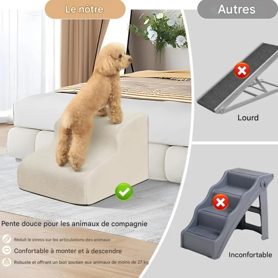 - Confort adapté : La rampe incurvée est adaptée aux chiots et animaux blessés, destiné aux chiens de petite et moyenne taille, s’appuyant contre les meubles.