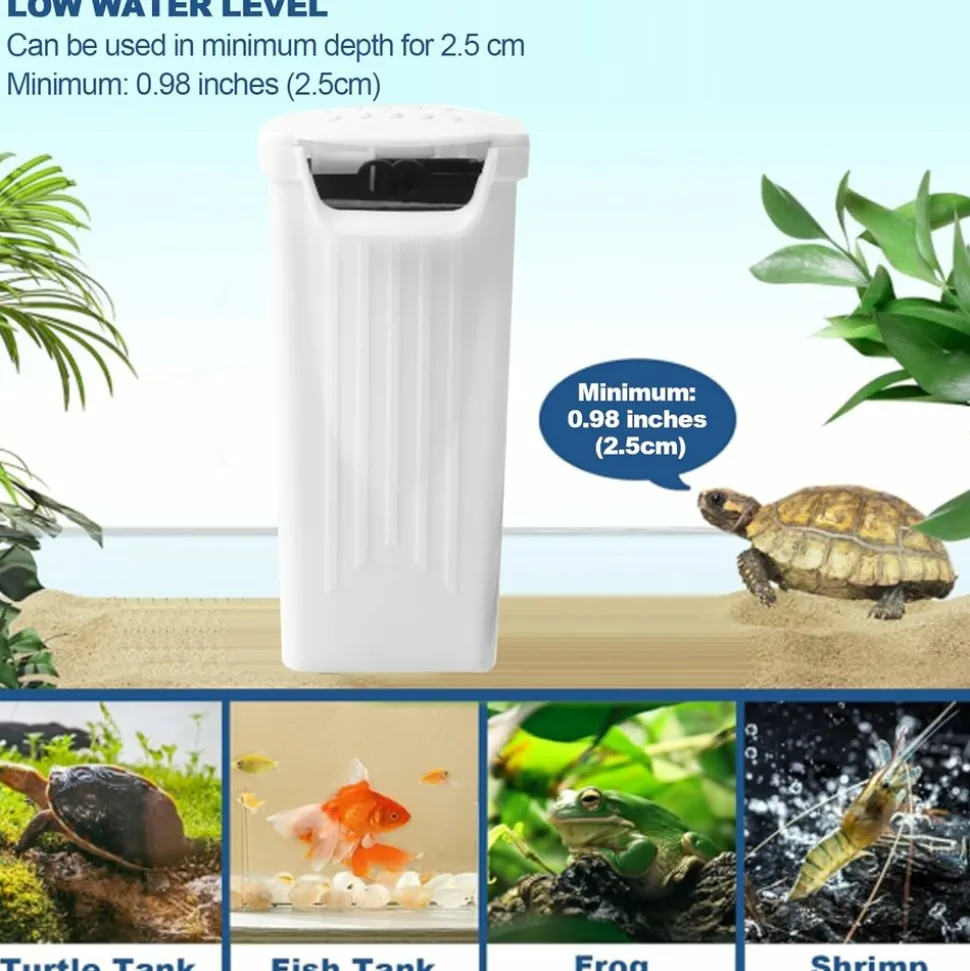 - 【Application min 2.5cm】Niveau d’eau minimum de 2,5 cm, adapté aux récipients miniatures pour grenouilles, tortues ou petits poissons.