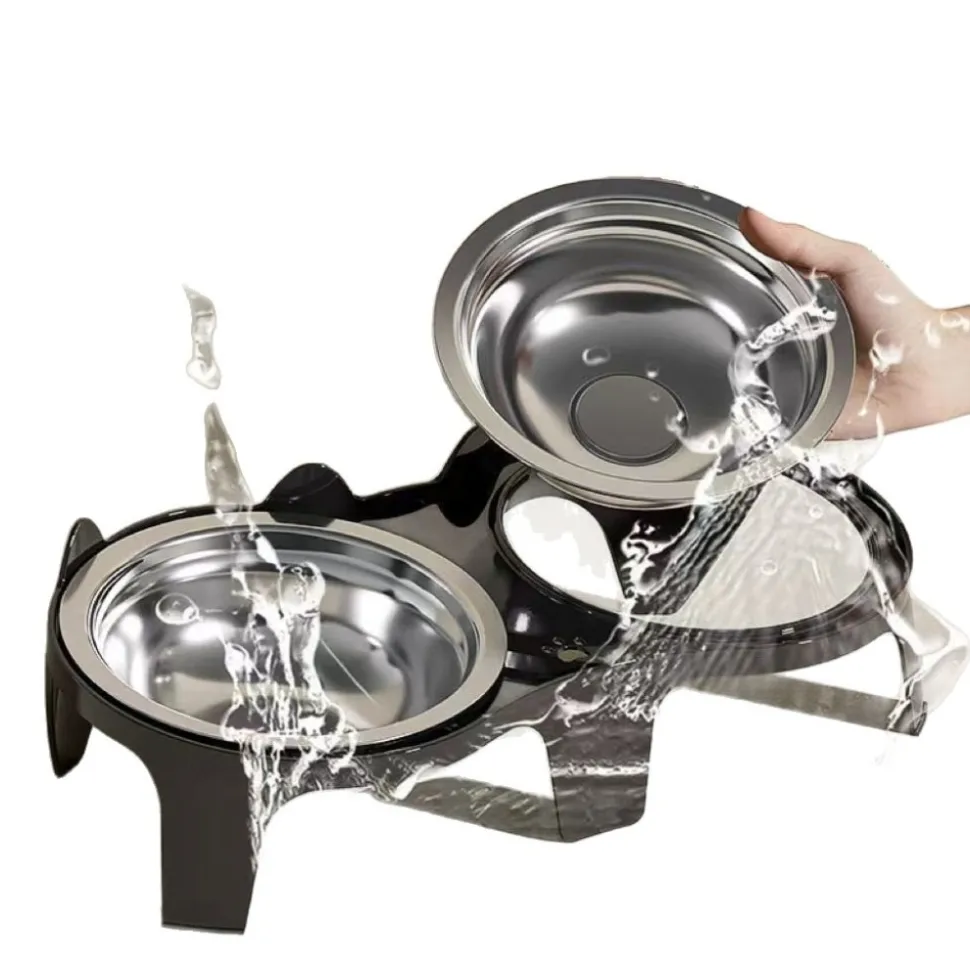 - Bols en acier inoxydable doublement épais : Fournis en paire, ils empêchent la contamination croisée, gardent la nourriture fraîche et sont faciles à nettoyer, même en lave-vaisselle.