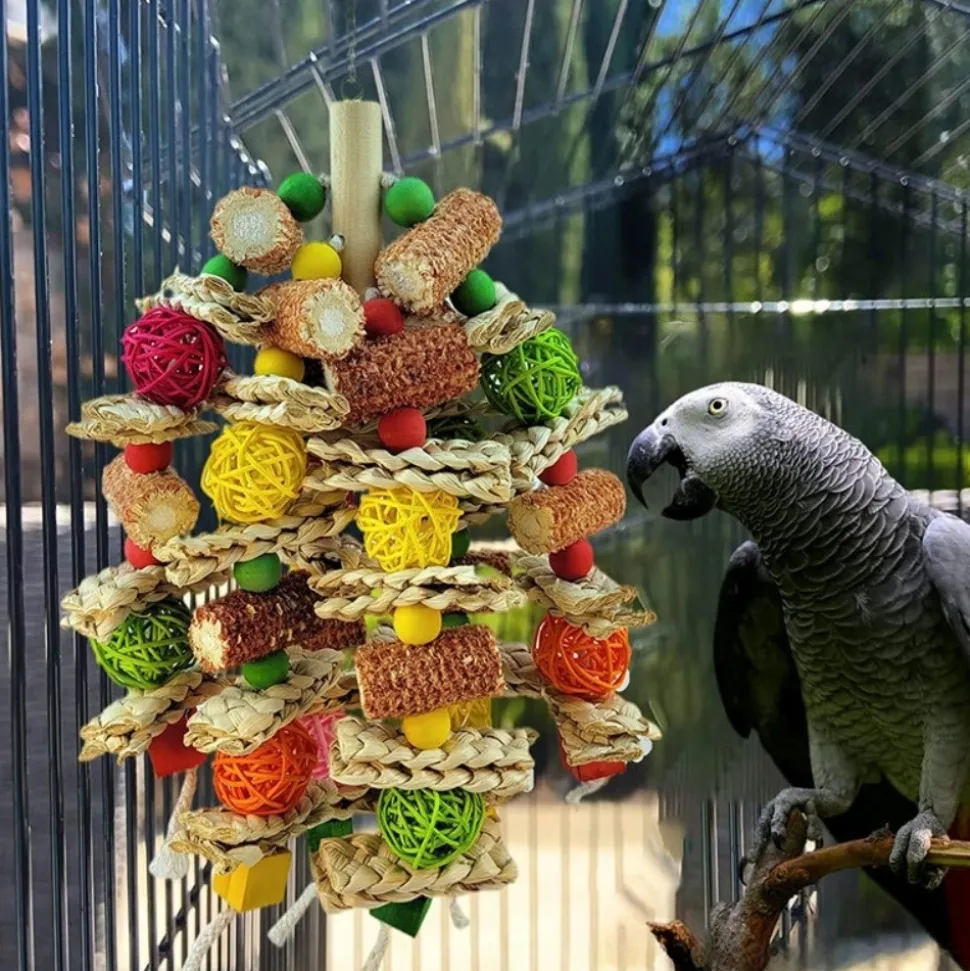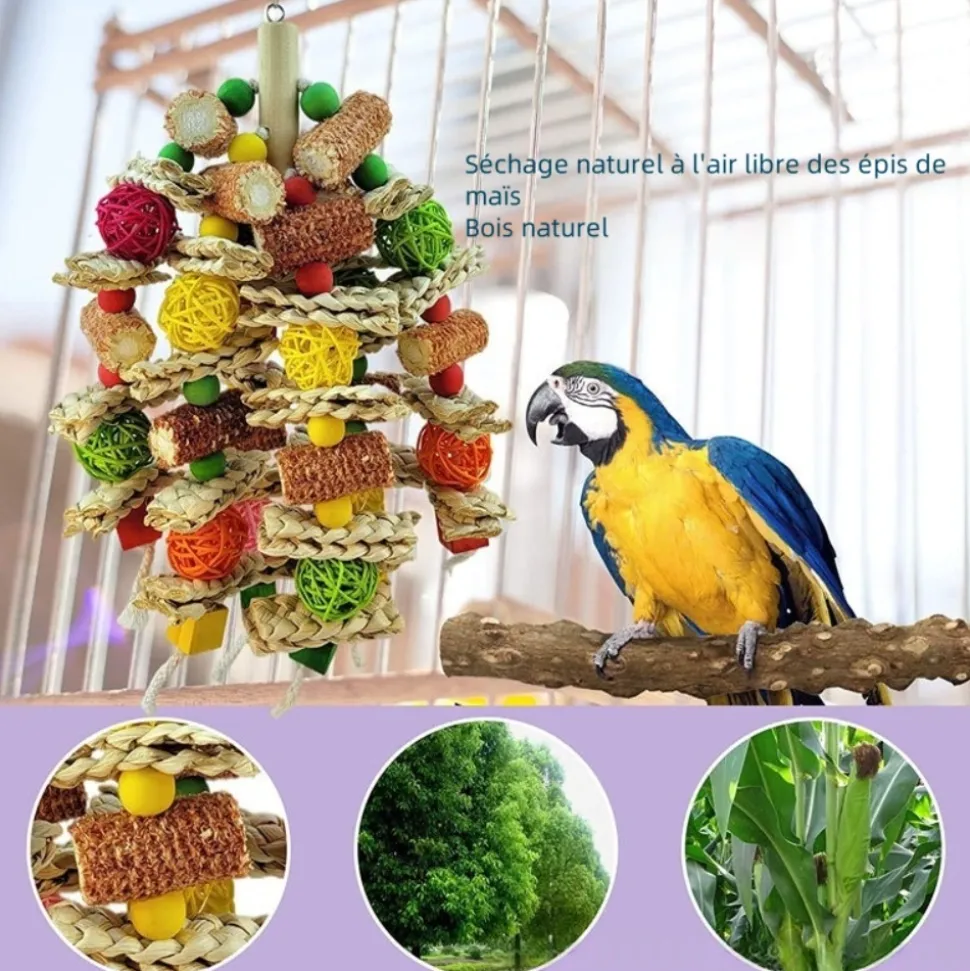 - Stimulation mentale : Avec diverses textures et formes, ce jouet encourage le perroquet à être actif physiquement, évitant l’ennui et stimulant son esprit.