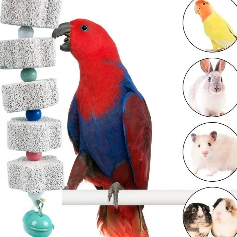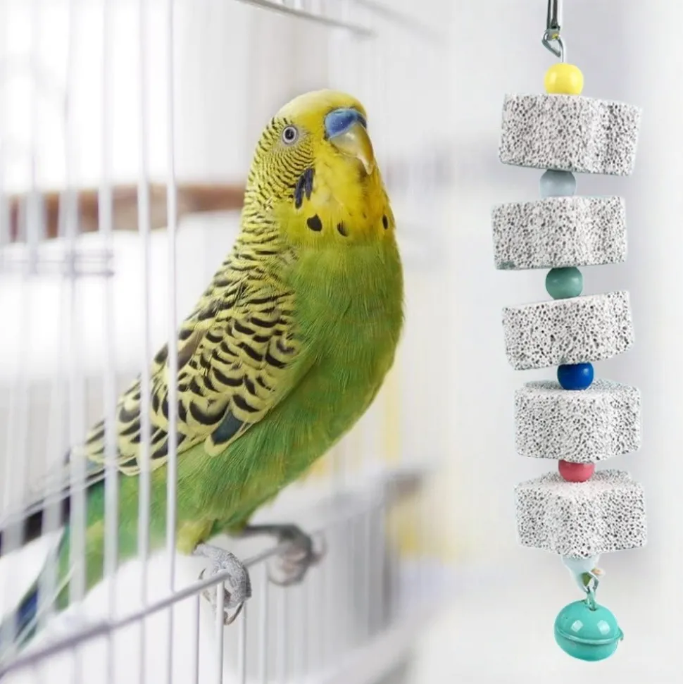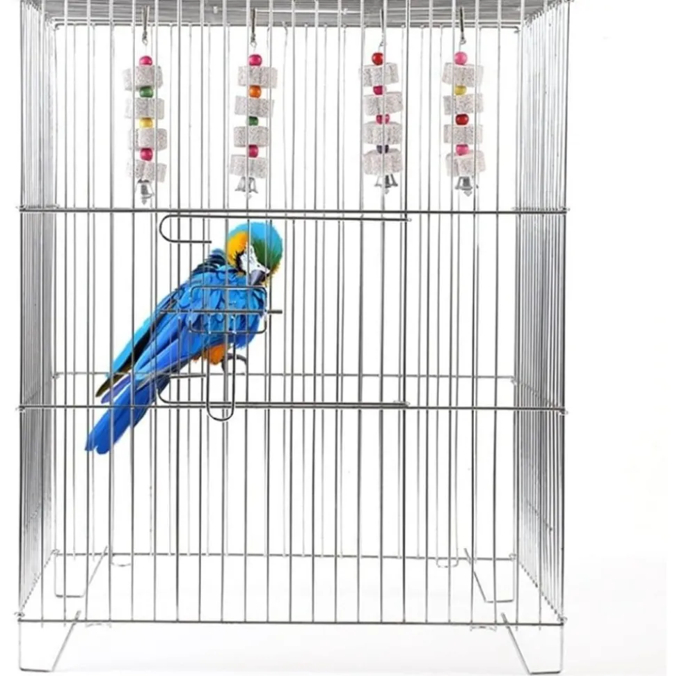 - Design attrayant : Avec des crochets, perles colorées et cloches, ils décorent la cage et attirent les perroquets.