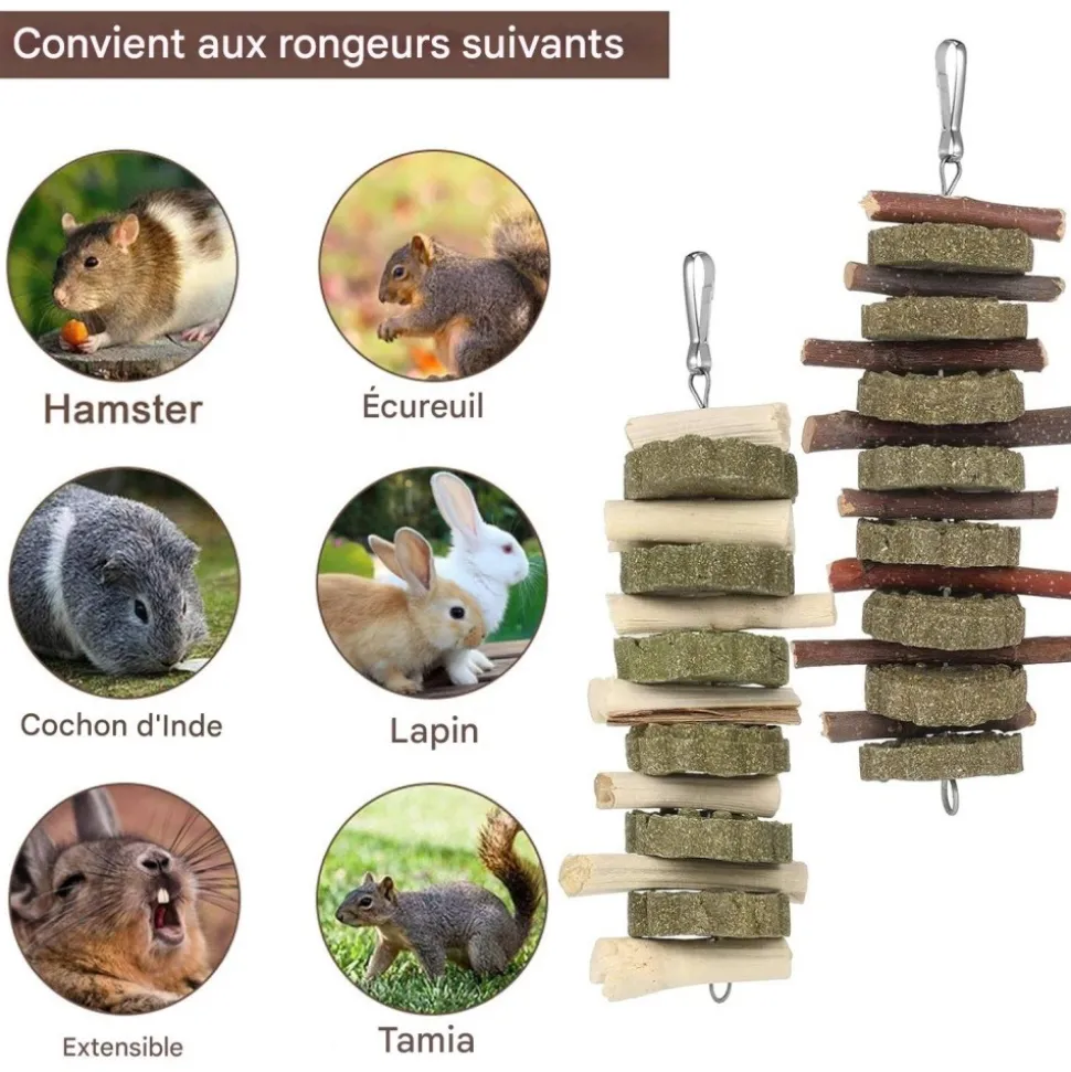 【Convient à la plupart des petits animaux】 : Les jouets à mâcher sont adaptés pour lapins, cobayes, chinchilla, écureuils, perroquets, hamsters, gerbilles et autres rongeurs.